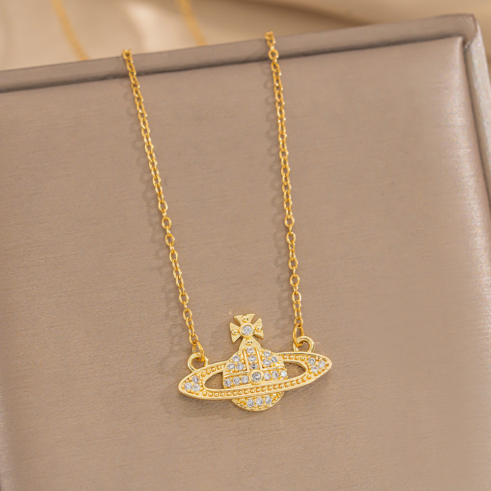 [Titanium Steel] European and American style Queen Mother's Golden Planet Titanium Steel Necklace Women's Fashion Collarbone Chain Light Luxury Jewelry Wholesale