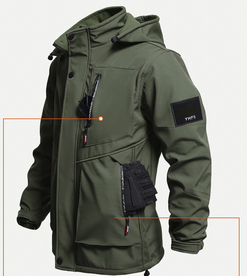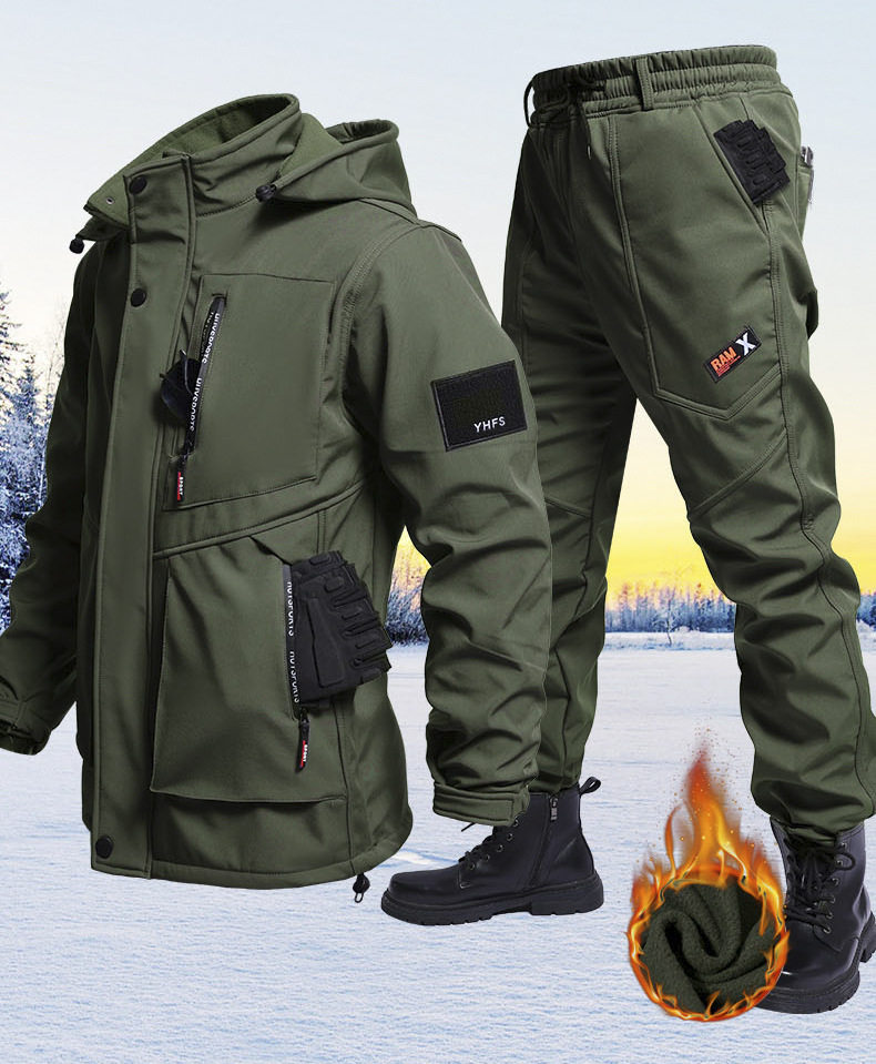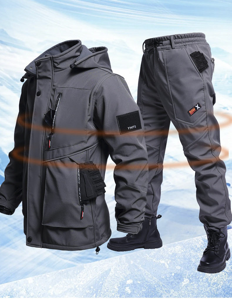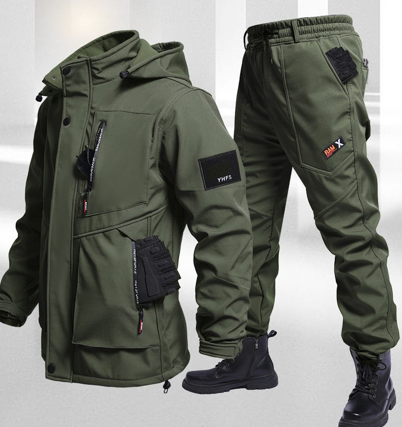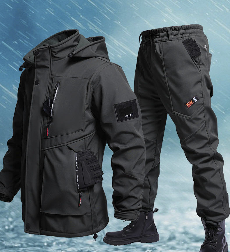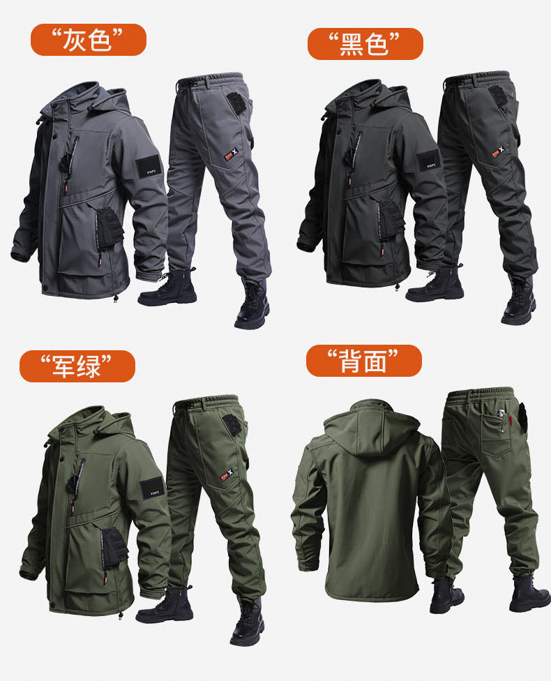 Autumn and Winter fleece-lined Waterproof Charge Clothes suit Soft Shell Mountaineering Warm Mountaineering Clothes Outdoor Labor Protection Dirty Resistant Work Clothes
