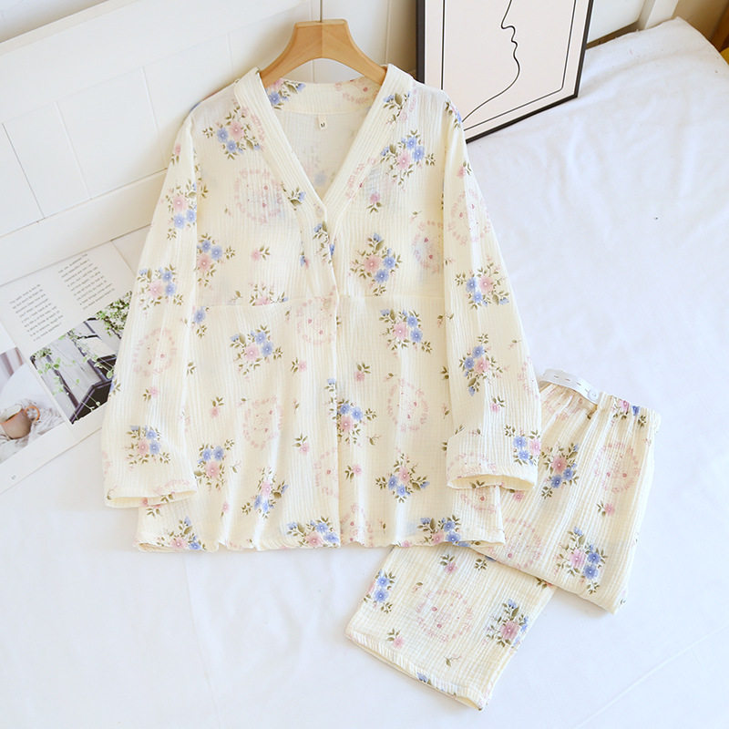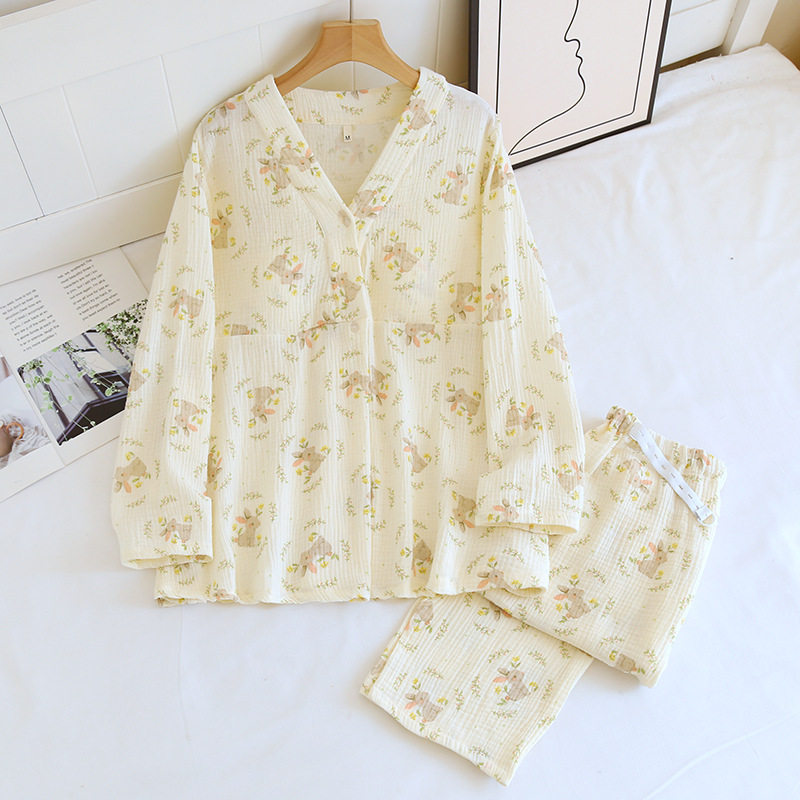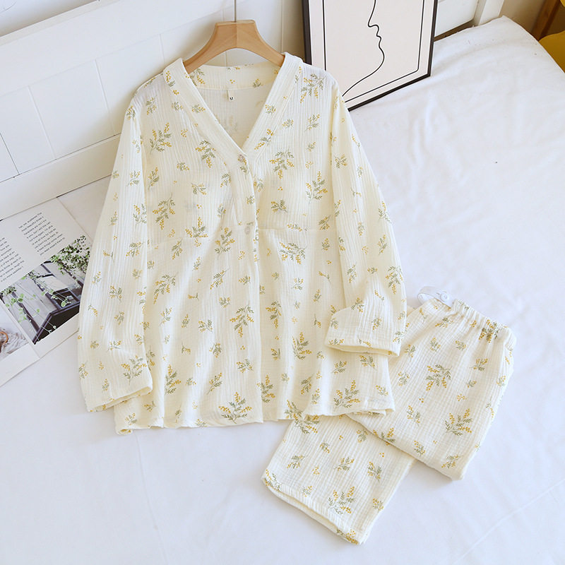 With chest pad month clothing cotton spring and autumn expectant pregnant women postpartum nursing nursing clothes two-piece set of hair replacement