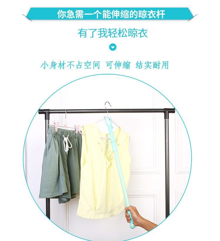 Retractable Clothes Drying Fork Balcony Clothes Fork Clothes Drying Pole Portable Clothes Pole Clothes Fork Wholesale Pure Color Plastic Pick Pole