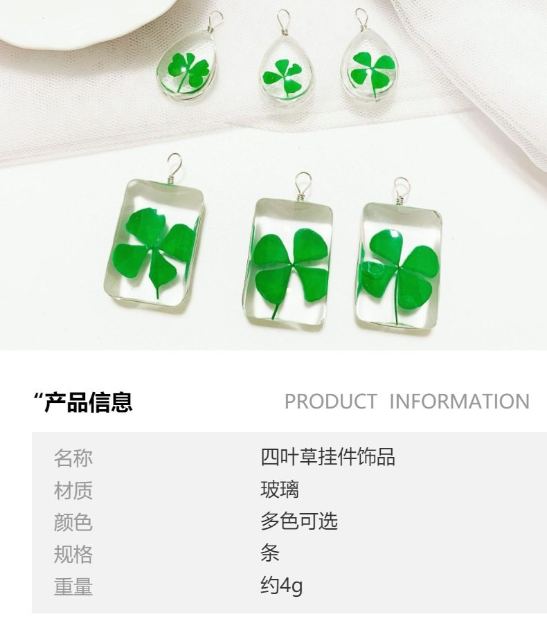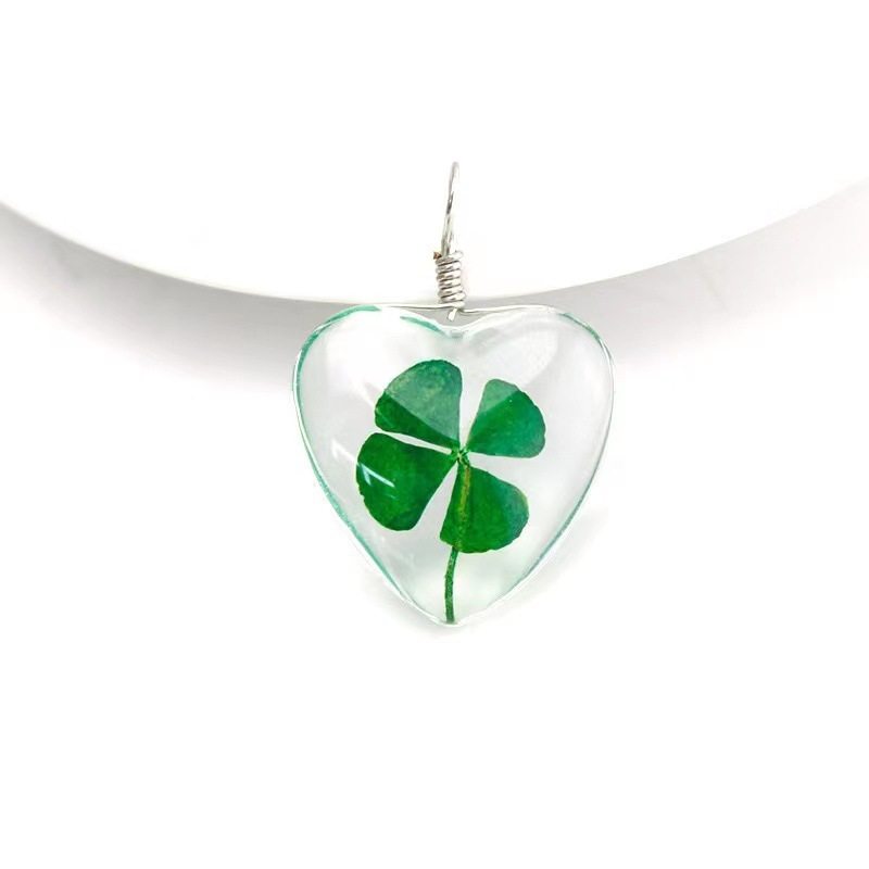 Four-leaf clover plant specimen time glass necklace green pendant sweater chain key chain diy accessories in stock