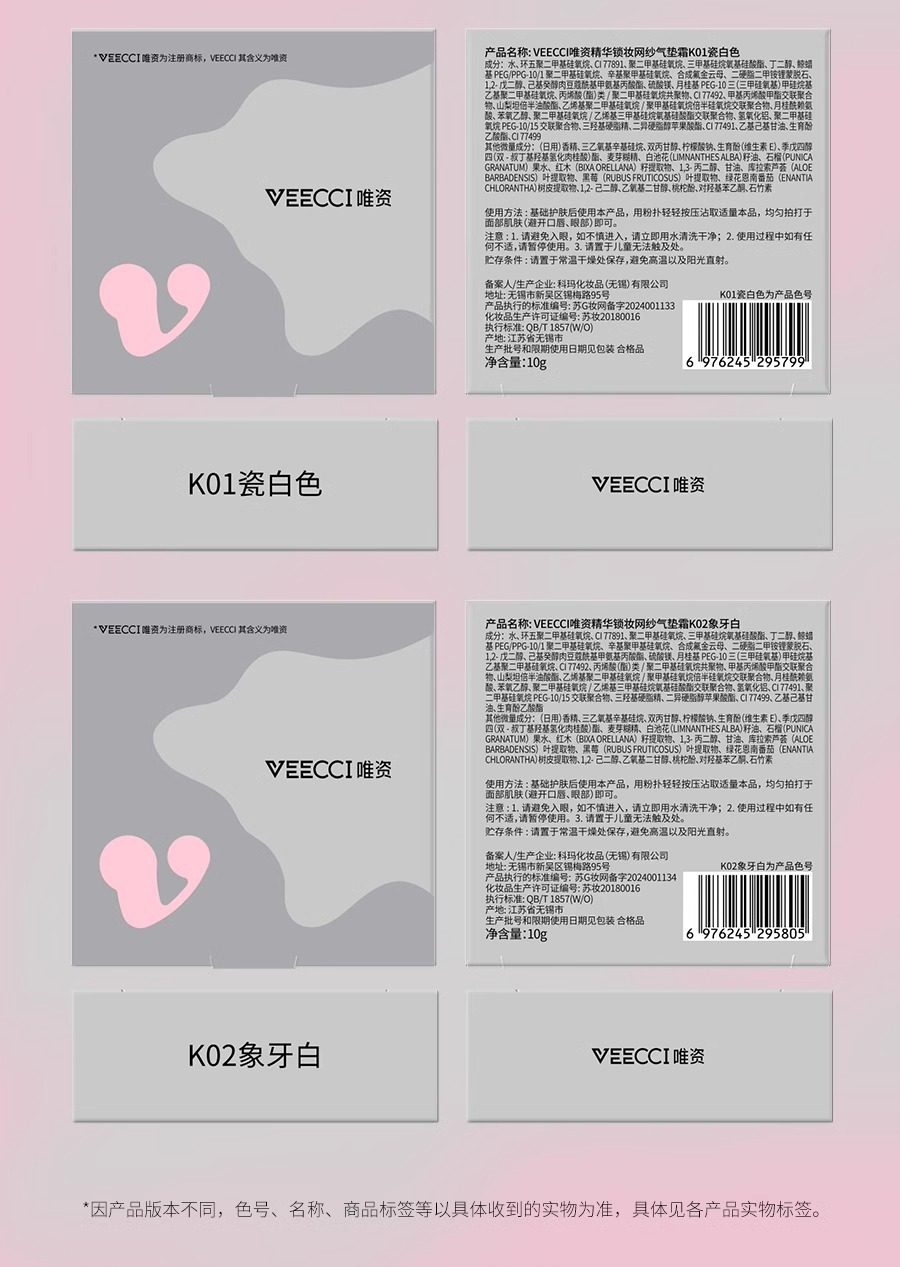 Color Weizi air cushion k01#Translucent porcelain white (small air cushion 4.5g),Weizi air cushion k02#Ivory white (small air cushion 4.5g),Weizi air cushion k01#Translucent skin white (legant pad 10g),Weizi air cushion k02#Ivory white (legant pad 10g)