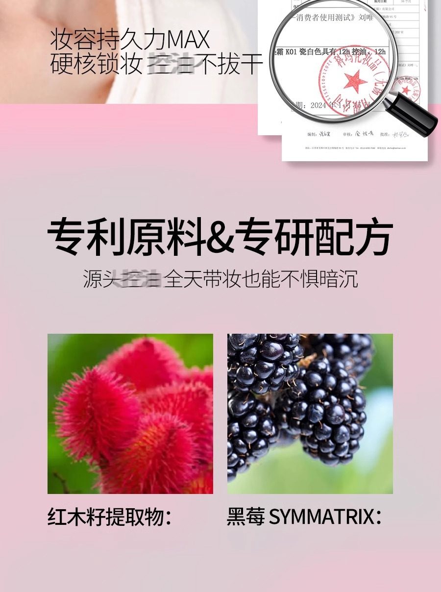 Efficacy Oil control,Waterproof,Moisturizing,Concealer,Long-lasting,Modify skin tone,Even skin tone,Not easy to discolor,Improve complexion,Hydrating and thin