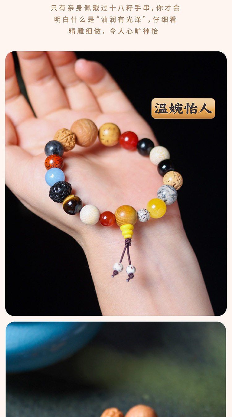 The Third Generation of Eighteen-Seed Running Volume Bracelets with 18-Seed Bodhi Phoenix Eyes and Multi-Beads for Boys and Girls to Hold Buddhist Beads Accessories