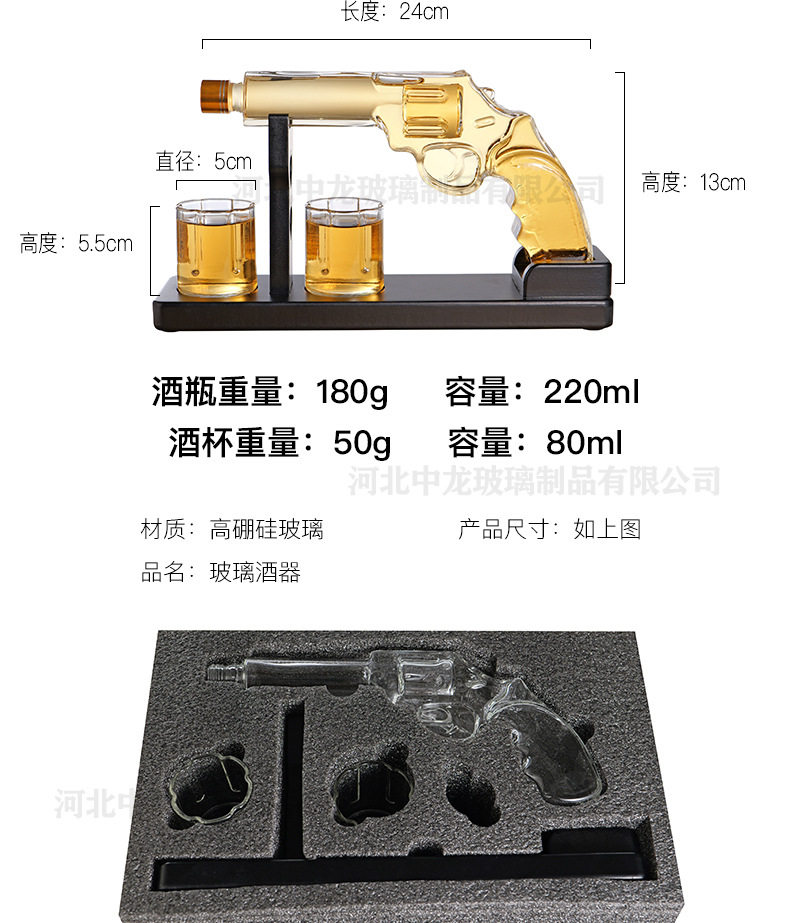 Creative Pistol Shape Glass Decanter Gun Whisky Wine suit High Borosilicate Glass Bottle