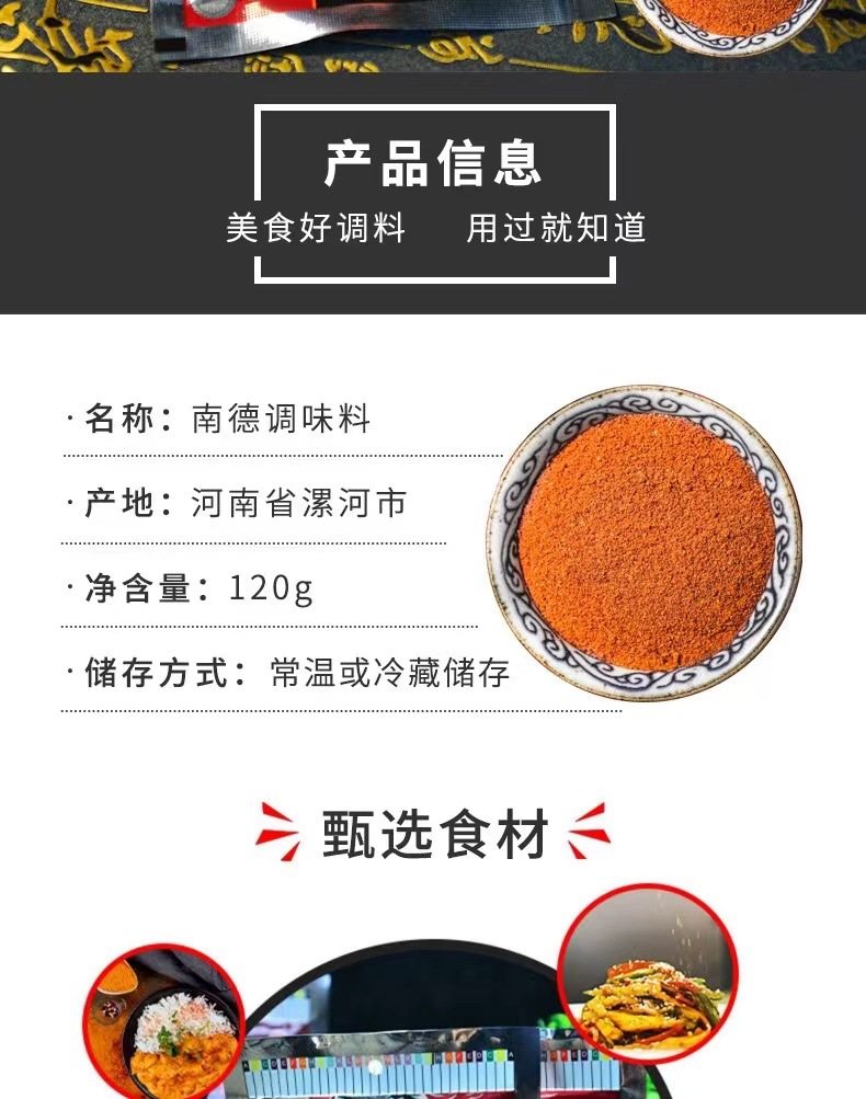 | Specifications | 120g southde seasoning 1 bag,3 bags of 120g southde seasonings,5 bags of 120g southde seasonings,750g southde seasoning 1 bag,750g nande seasoning 2 bags,750g southde seasoning 3 bags |