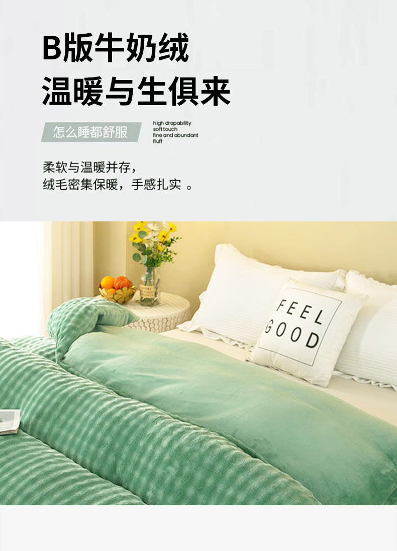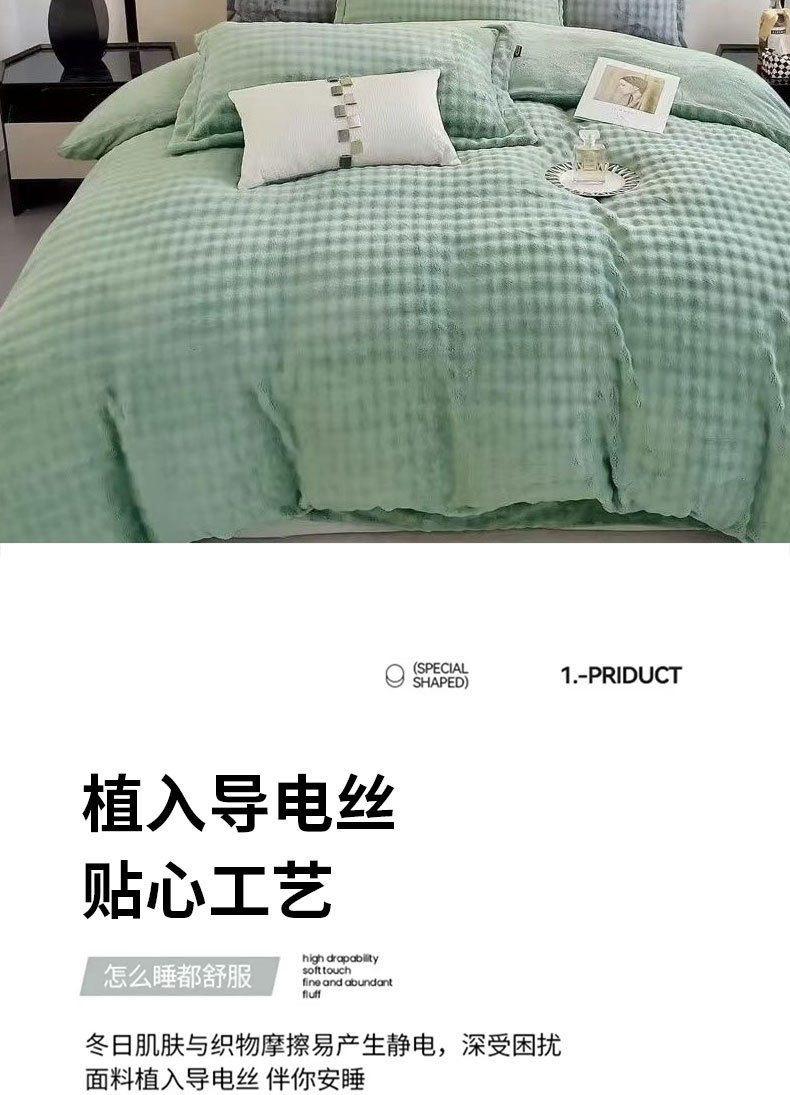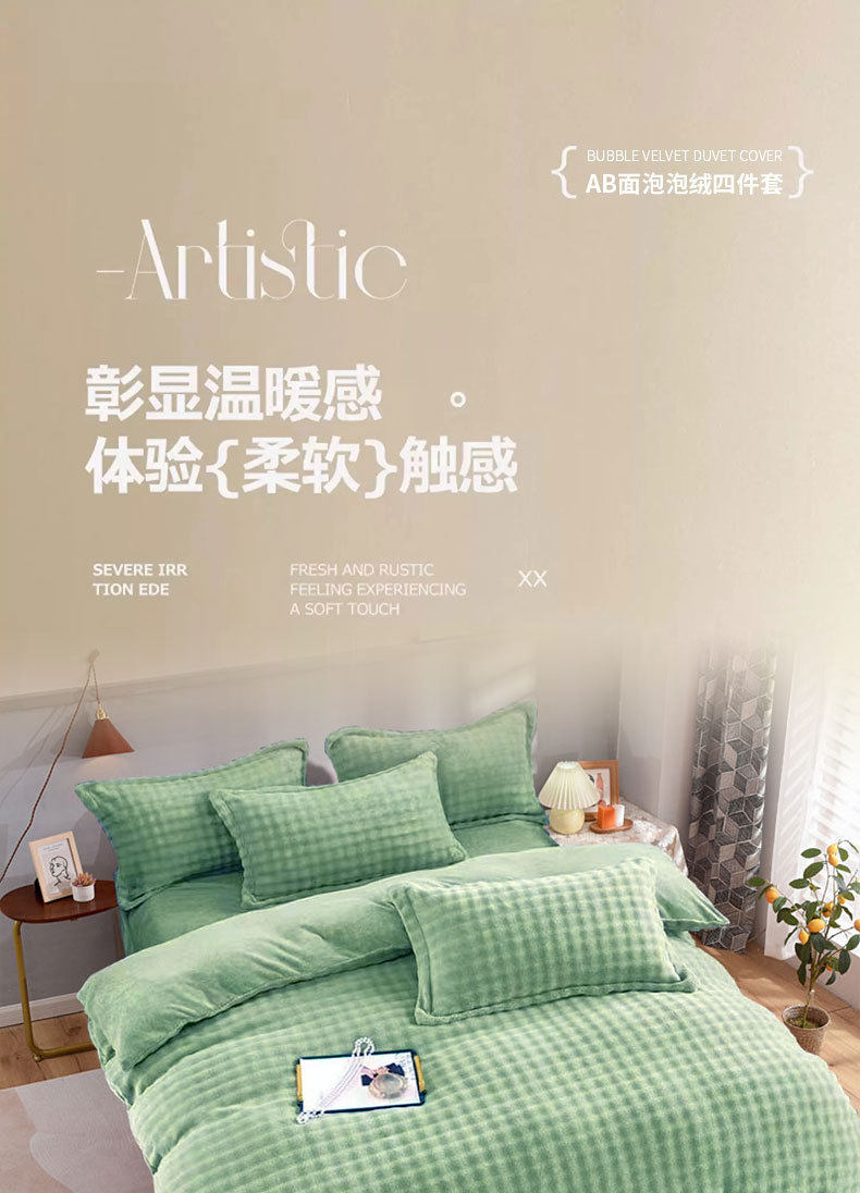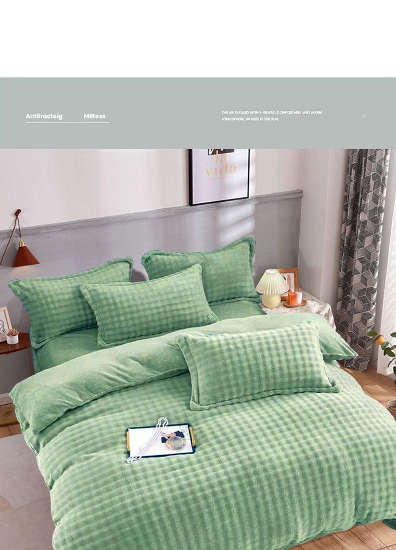 Winter Bubble Milk Velvet Four-piece Set fleece-lined Quilt Cover Bed Sheet Pillowcase Single Double Thickened Plush Quilt Cover Three-piece Set