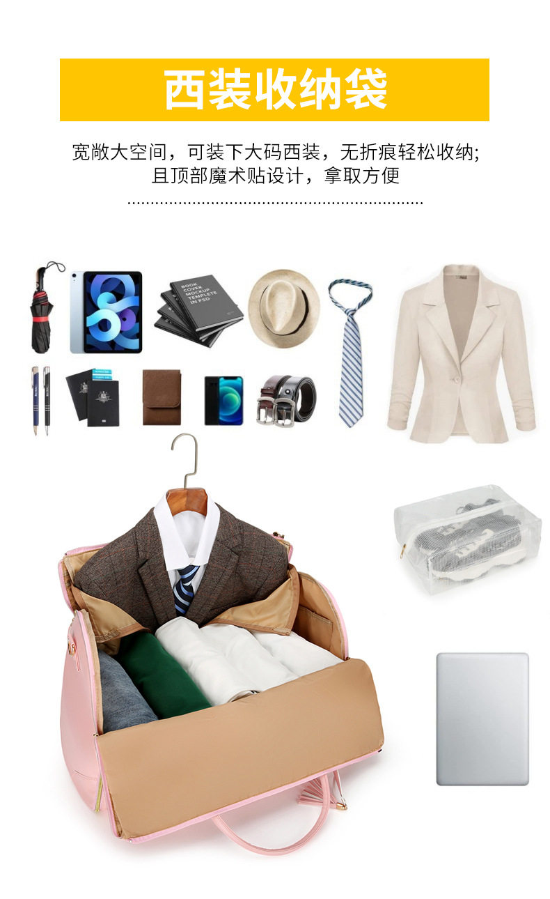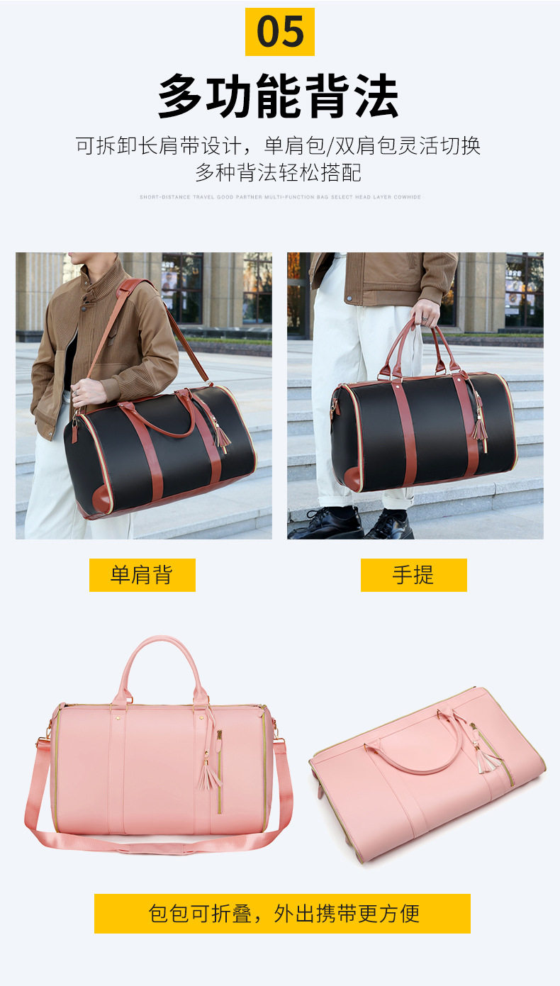 24 Cross-Border New Fashion Foldableing Suit Bag for Men and Women, Men's Multifunctional Travel Bag, Satchel Pu Storage Travel Bag