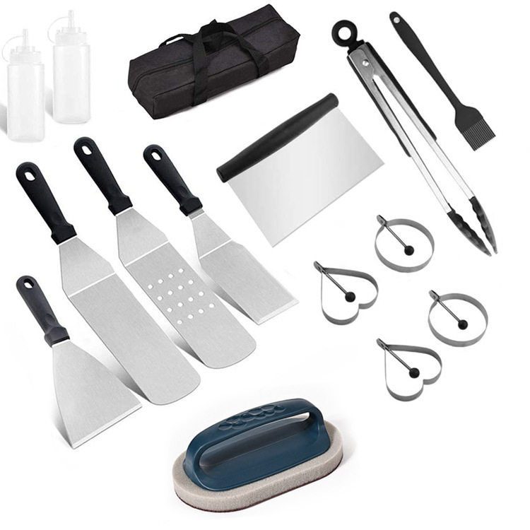 Outdoor BBQ Barbecue Tools 15 Piece Set Stainless Steel Grill Shovel Cooking Shovel Teppanyaki Stainless Steel Combination Baking Tool