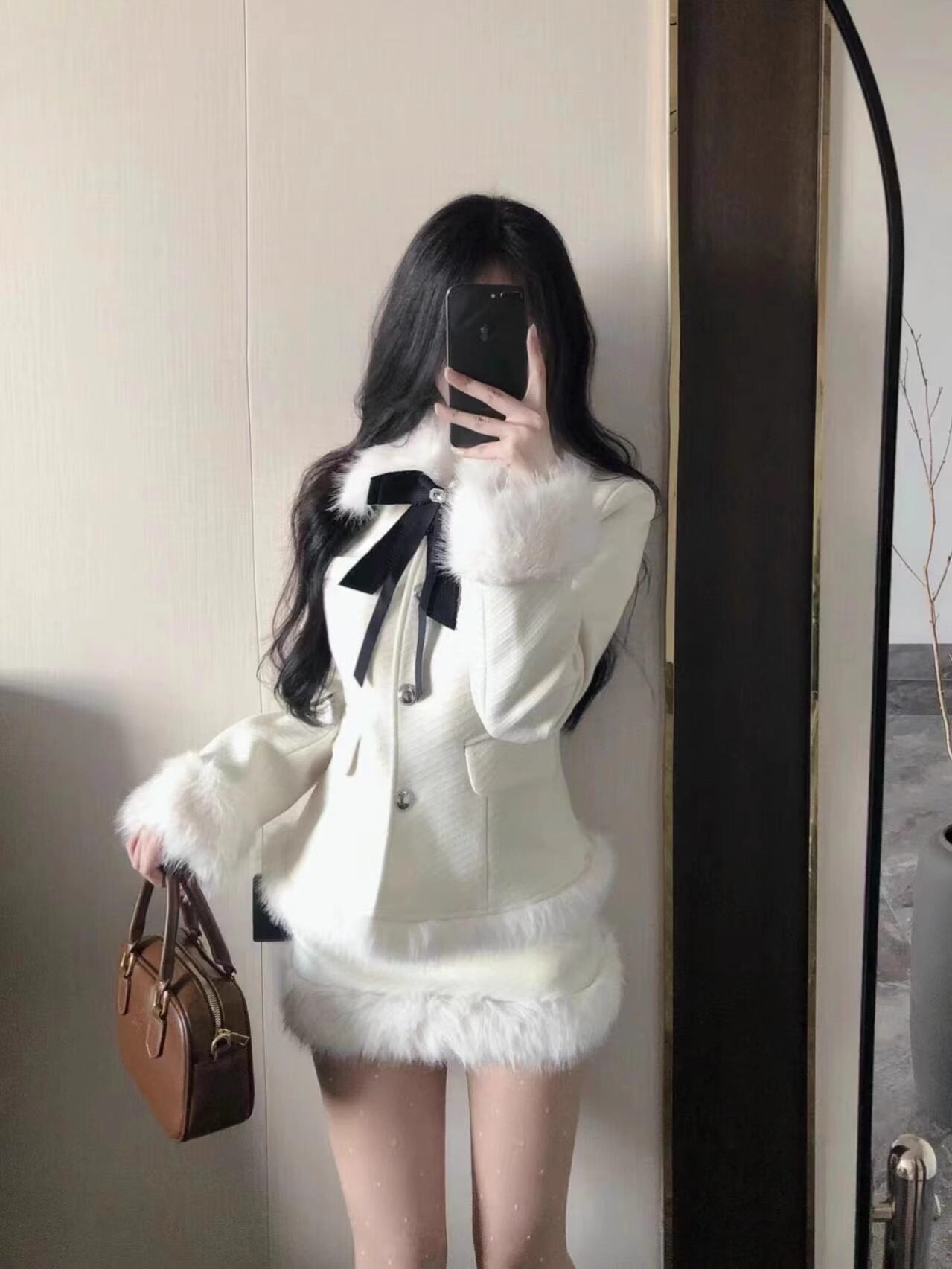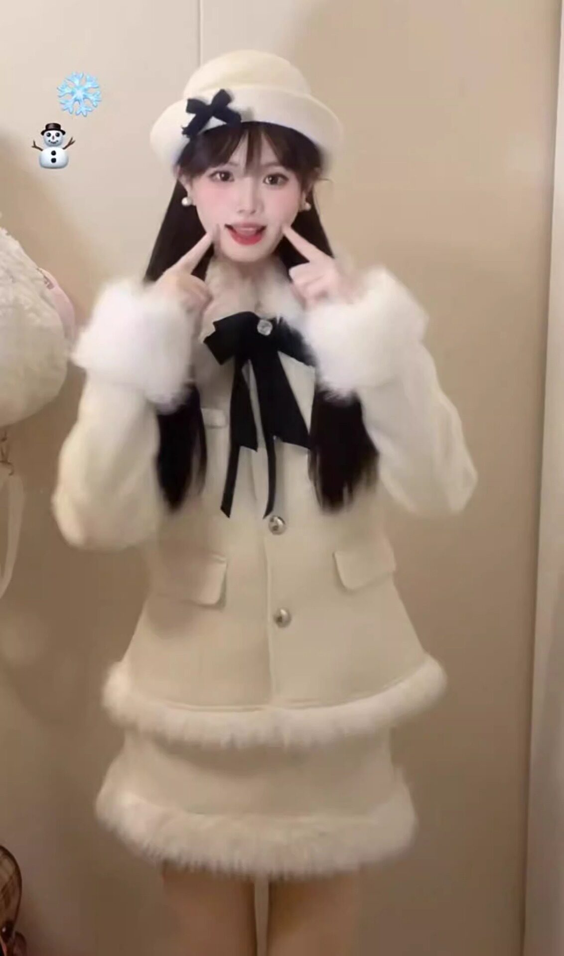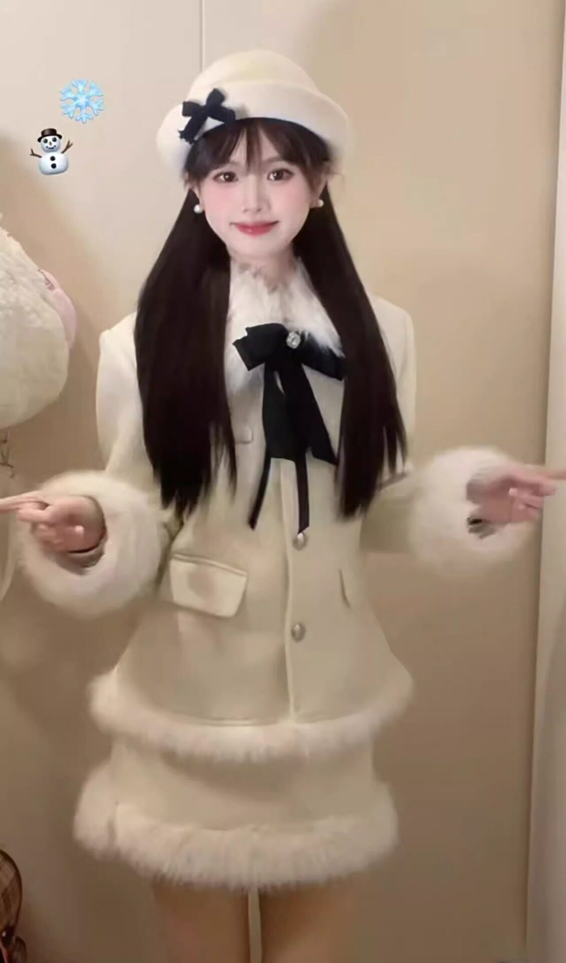 Korean Drama Daughter Big Miss Tight Waist Slimming Woolen Coat Overskirt suit Women's cotton and thickening Warm Two-piece Set