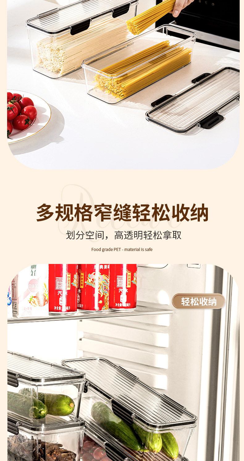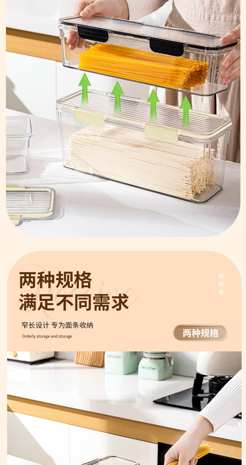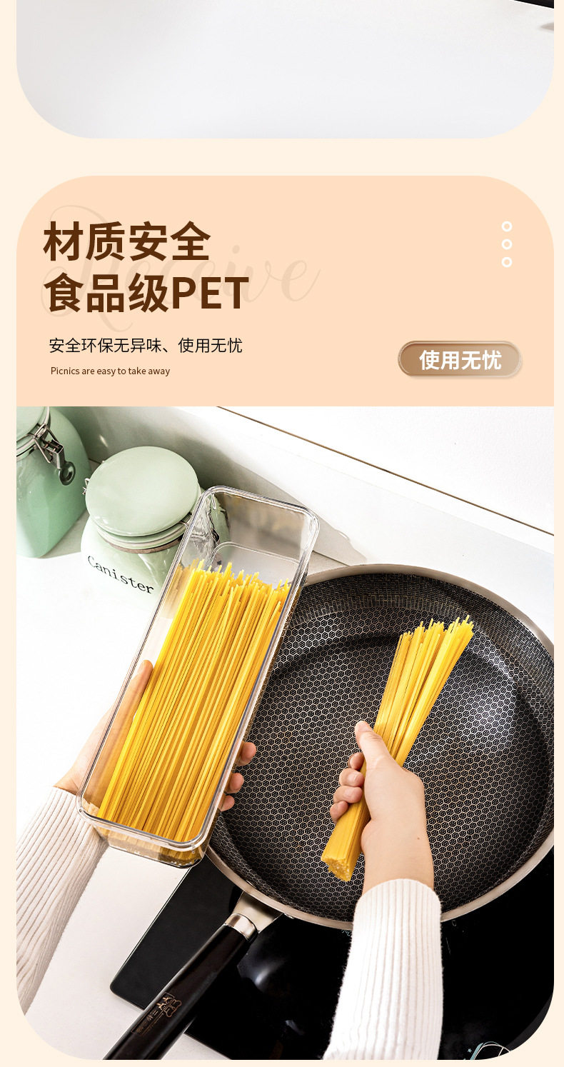 PET Transparent Large-capacity Sealed Box Kitchen Storage and Finishing Cereal Spaghetti Jar Refrigerator Storage Noodle Preservation Box