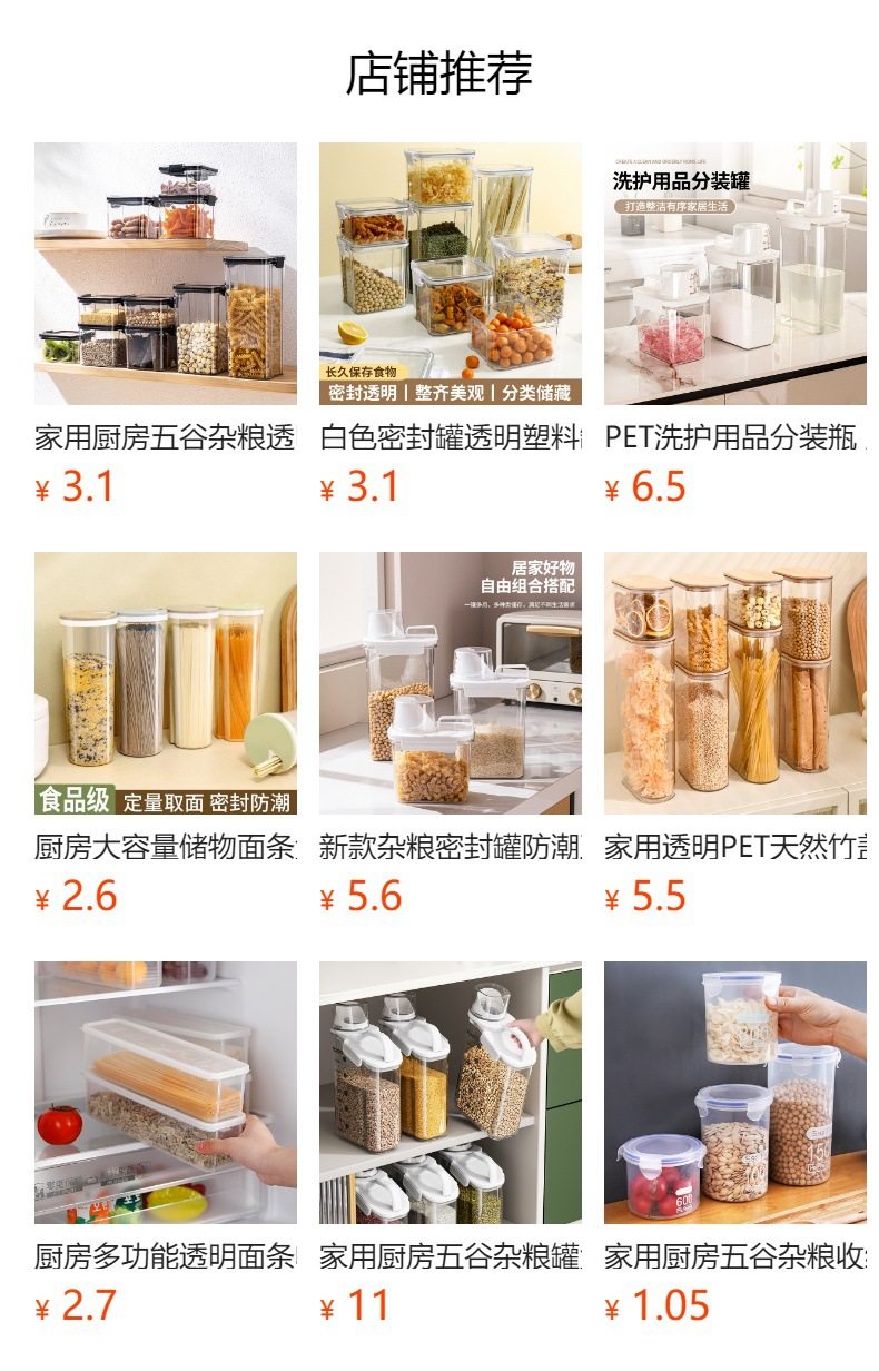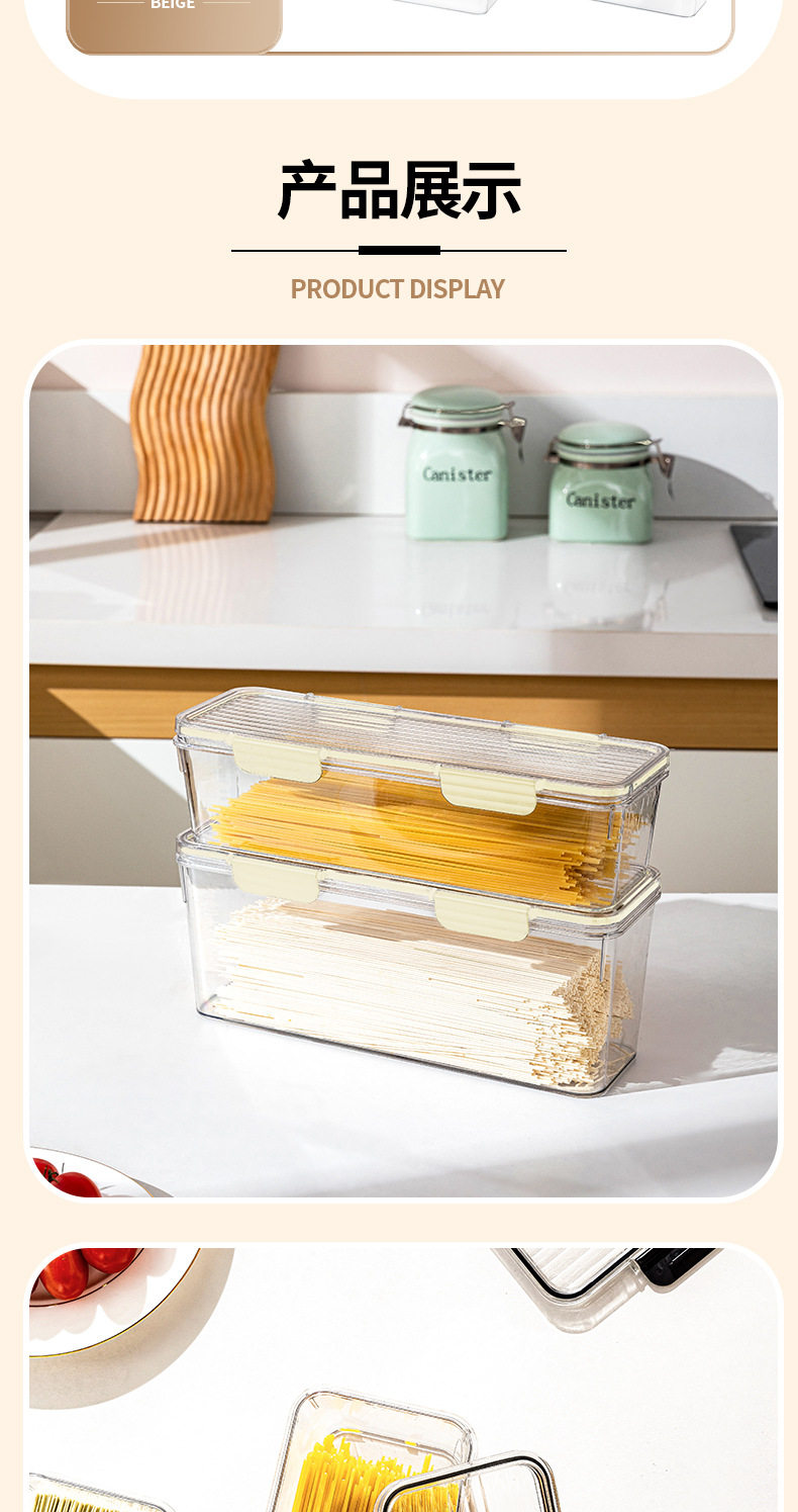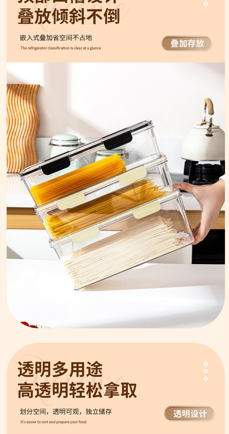 PET Transparent Large-capacity Sealed Box Kitchen Storage and Finishing Cereal Spaghetti Jar Refrigerator Storage Noodle Preservation Box
