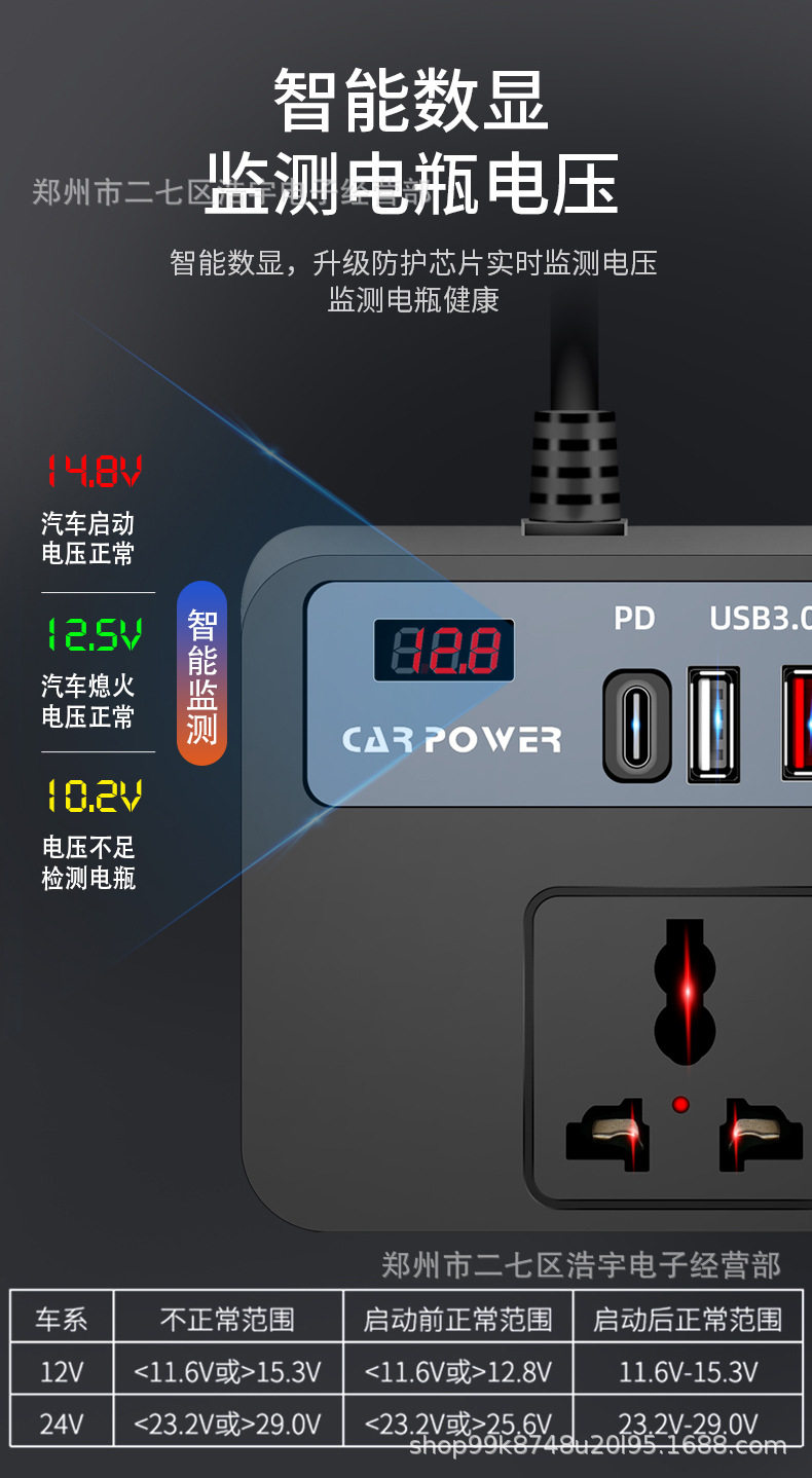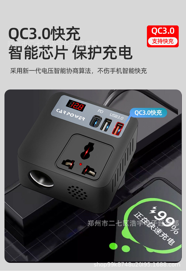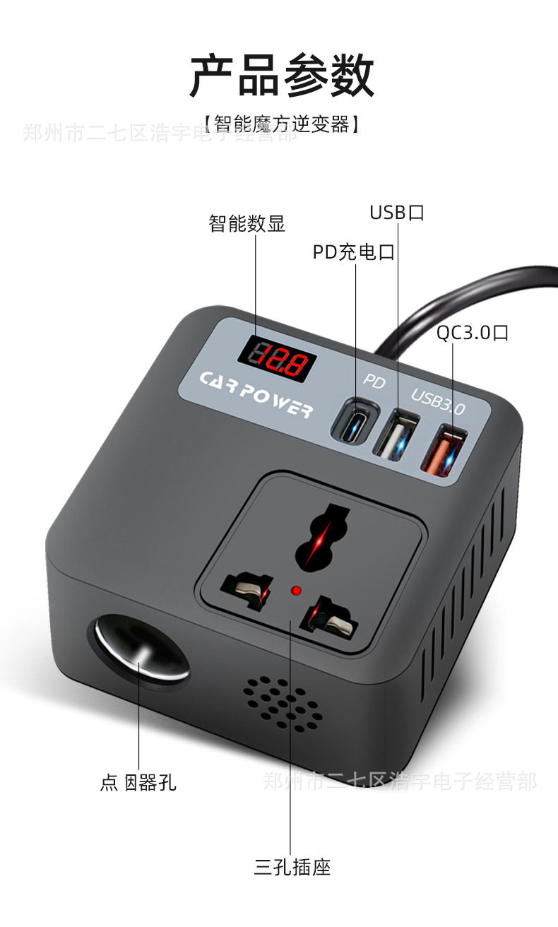 Car inverter Rubik's cube 2.45M cigarette lighter port QC3.0 fast charging car mobile phone charging car truck