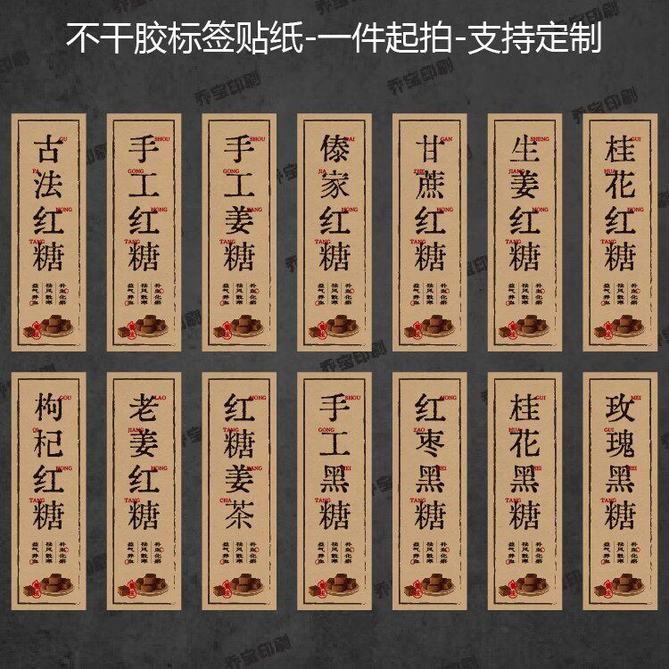 Brown Sugar Ginger Tea Ancient Method Brown Sugar Black Sugar Red Jujube Osmanthus Rose Wolfberry Brown Sugar Kraft Paper Adhesive Label Sticker