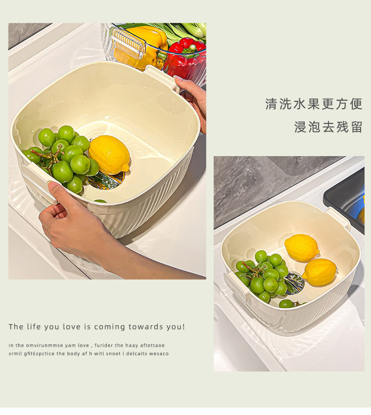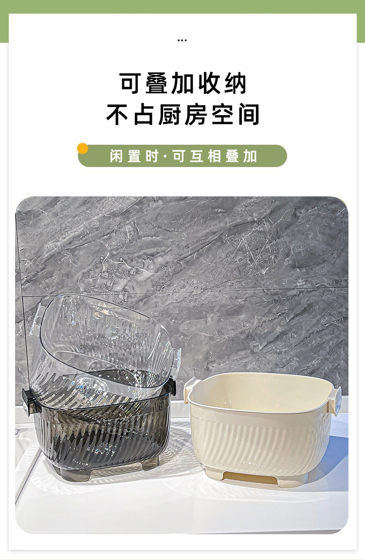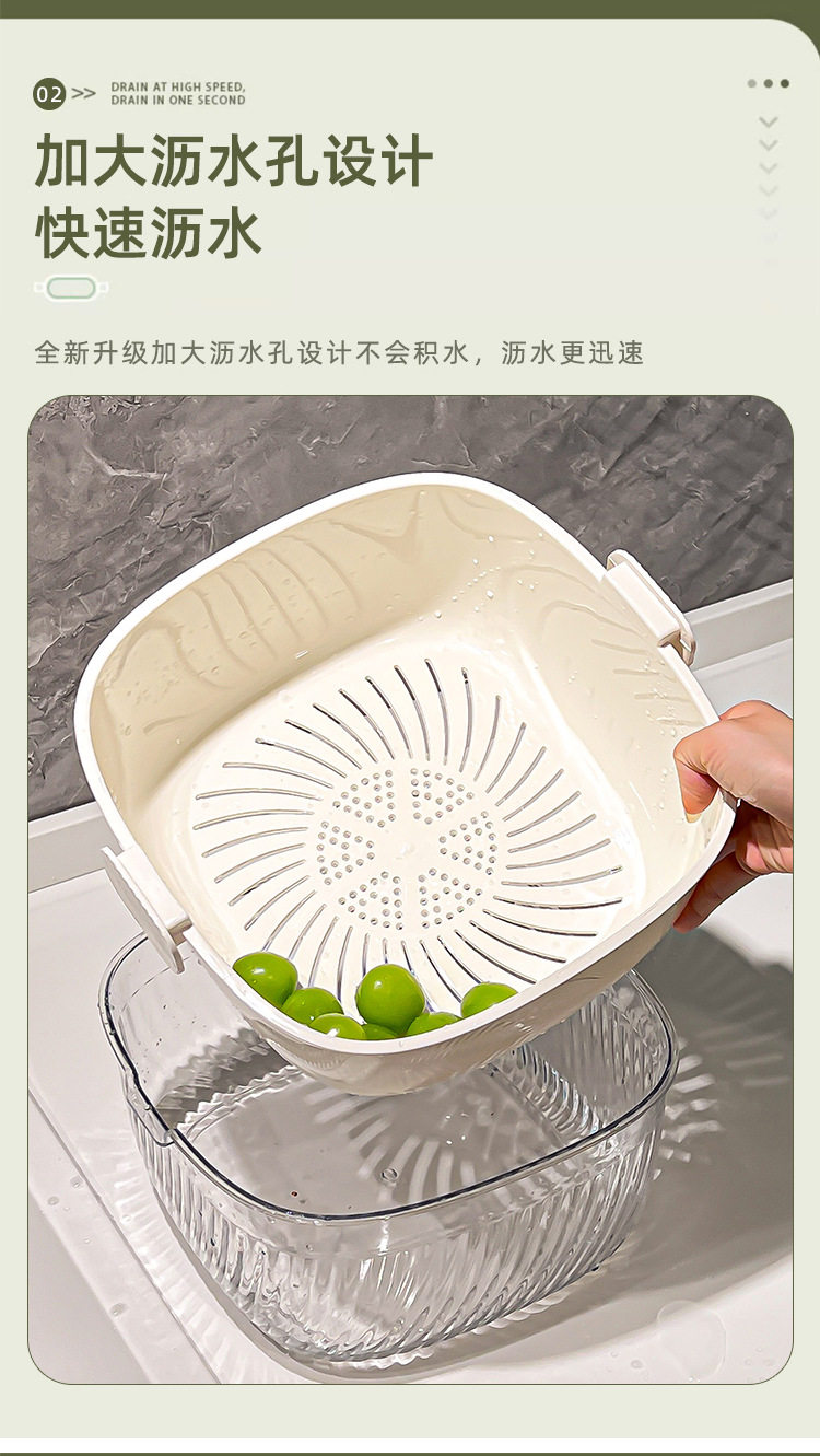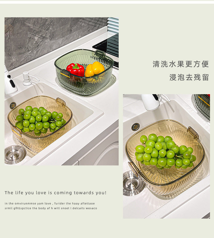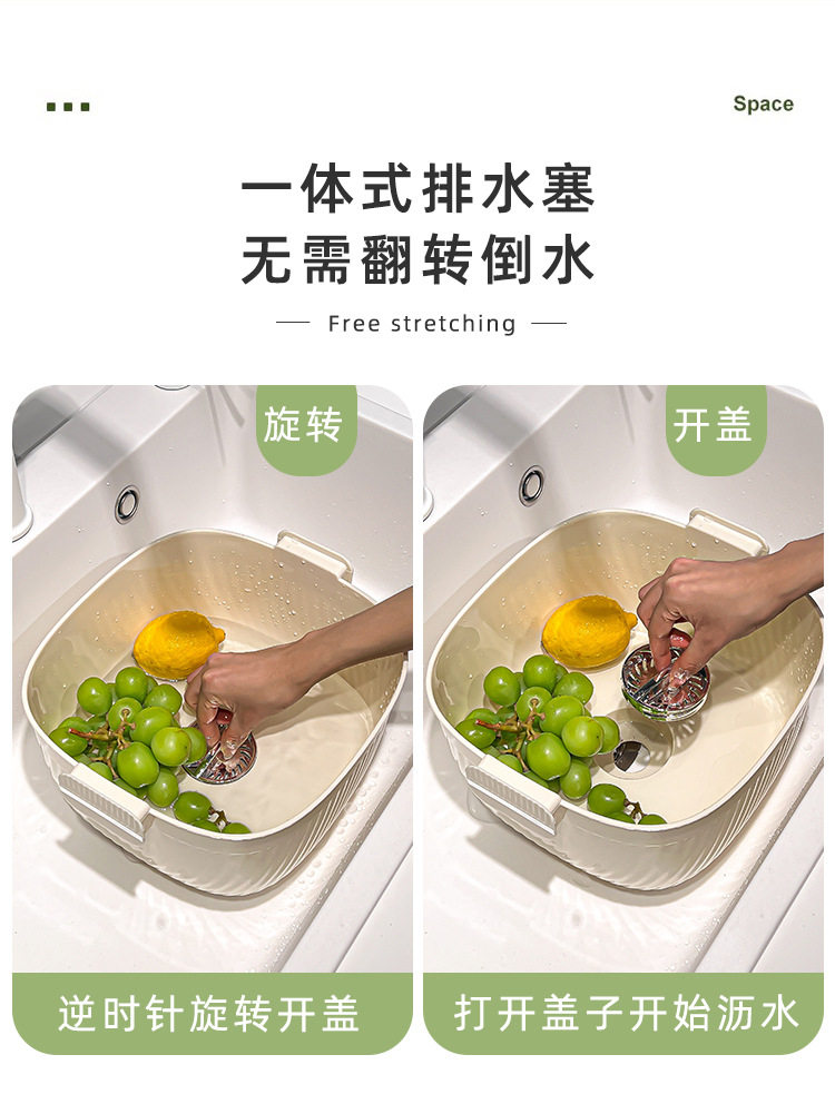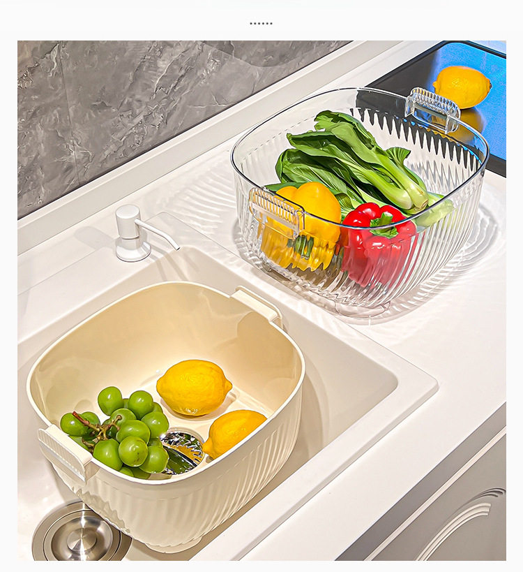 Kitchen double drain basket vegetable basin thickened plastic vegetable basket fruit basin storage basket vegetable basket factory wholesale