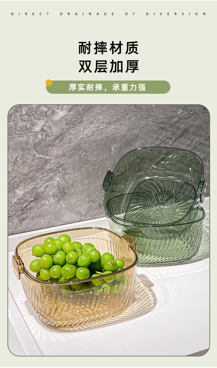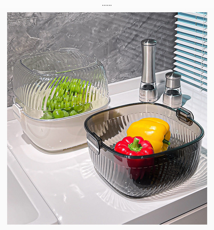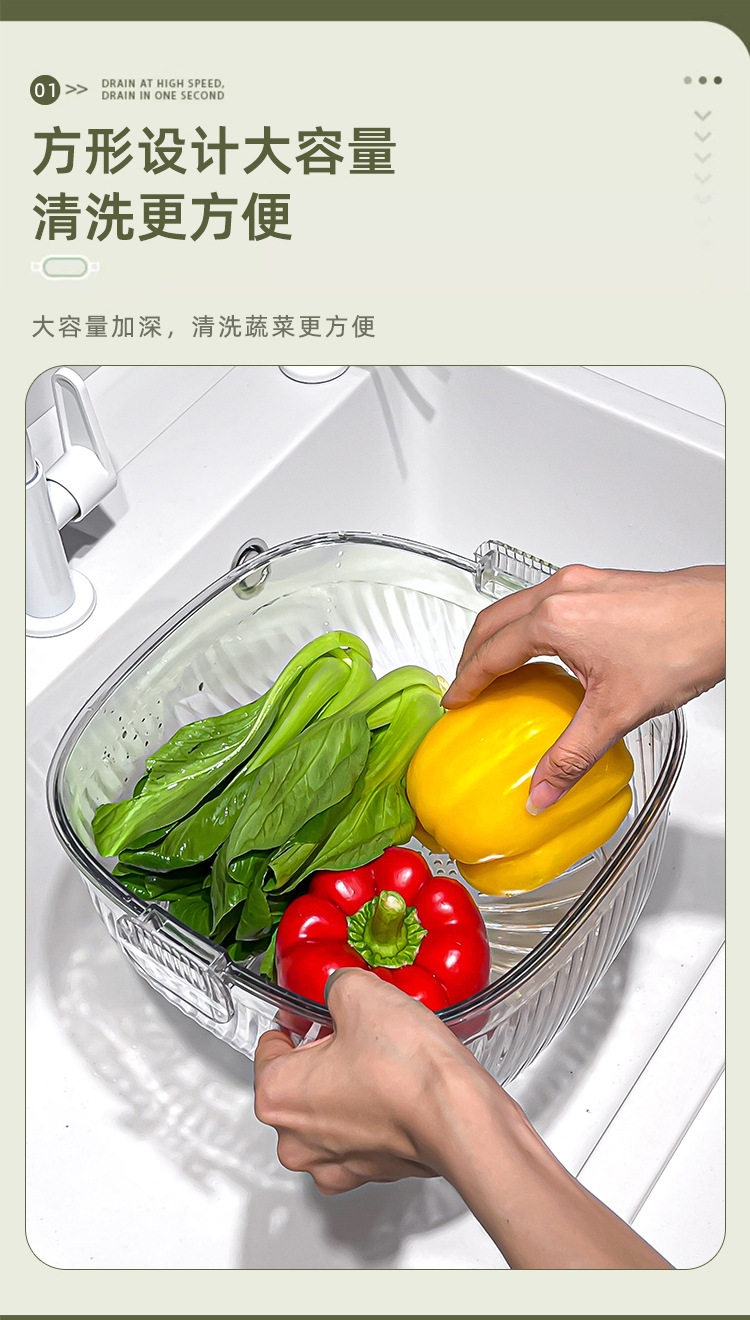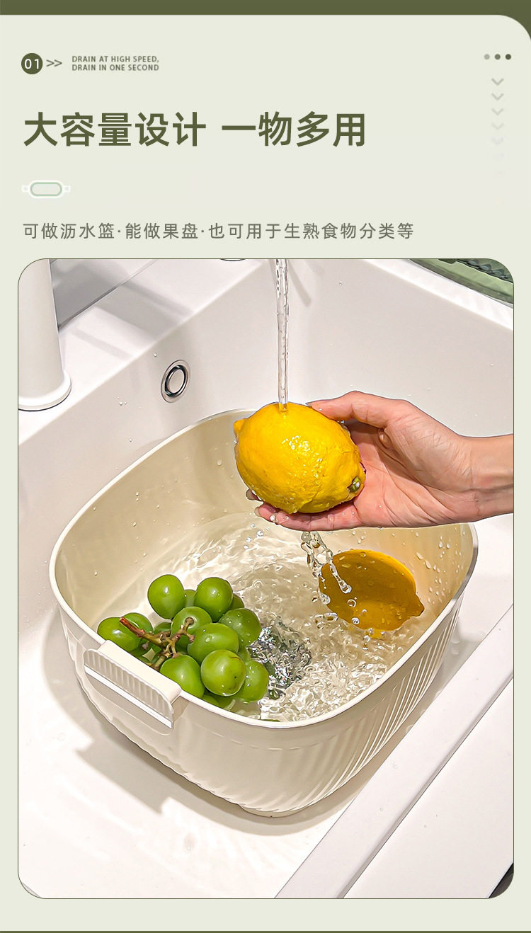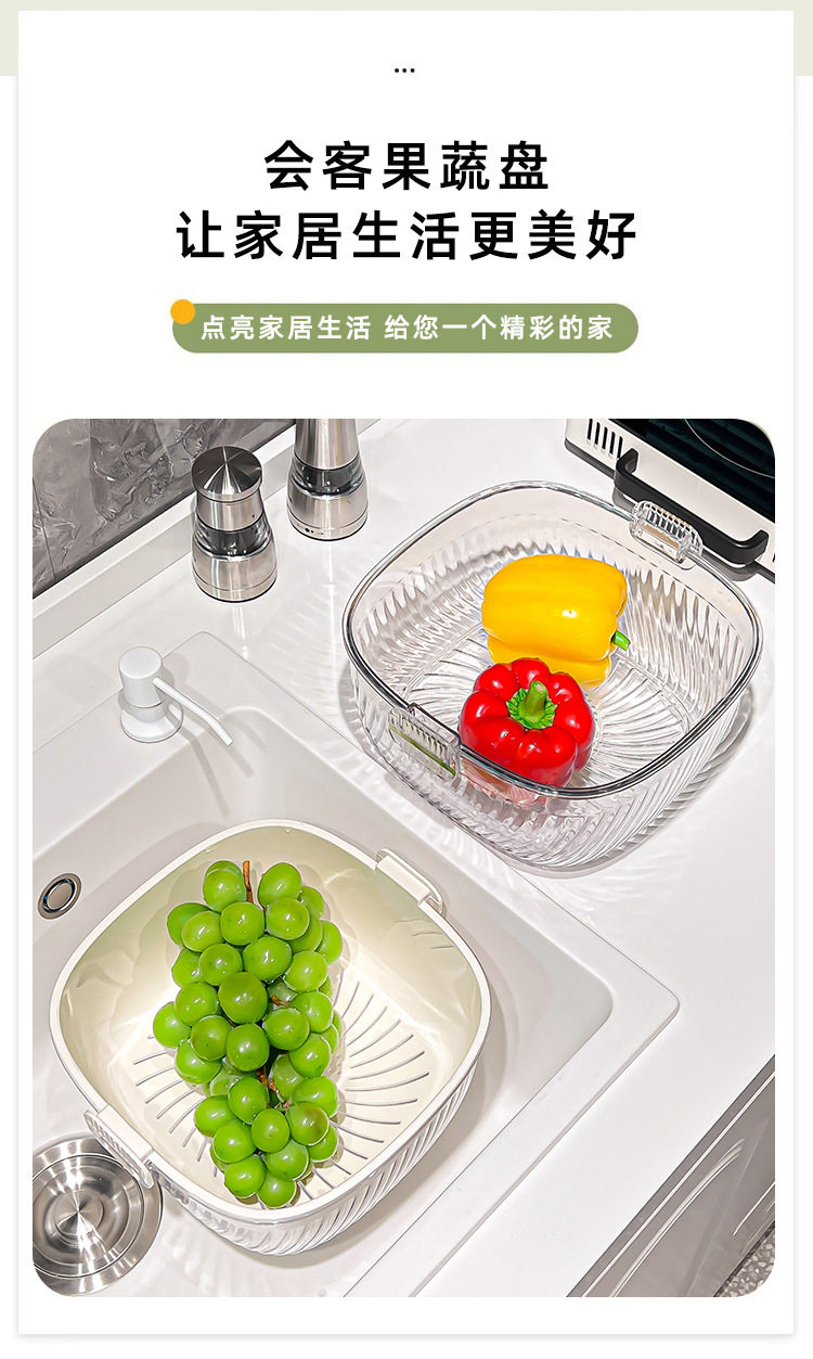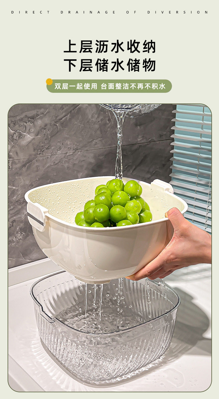 Kitchen double drain basket vegetable basin thickened plastic vegetable basket fruit basin storage basket vegetable basket factory wholesale