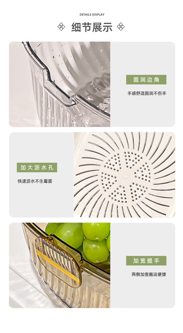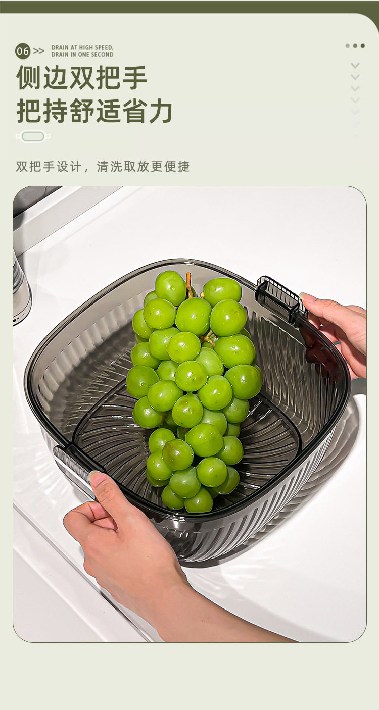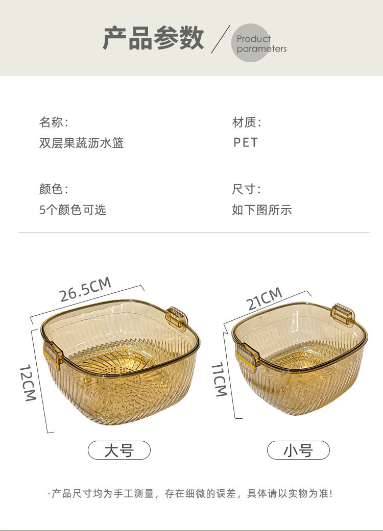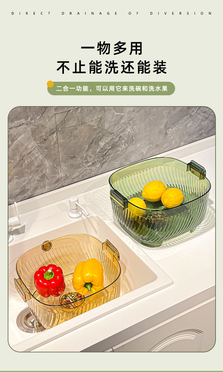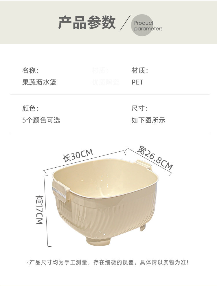 Kitchen double drain basket vegetable basin thickened plastic vegetable basket fruit basin storage basket vegetable basket factory wholesale