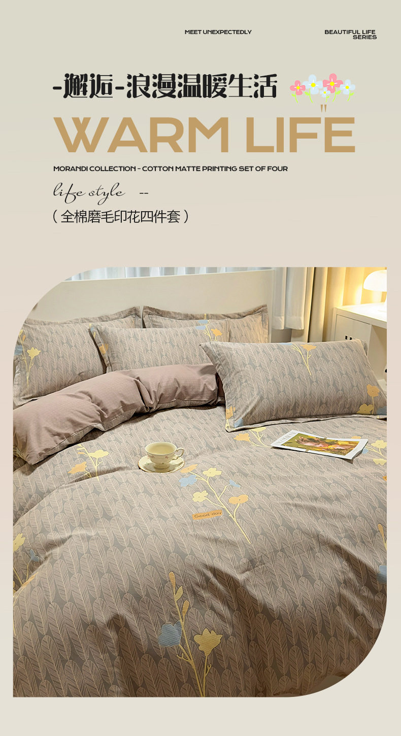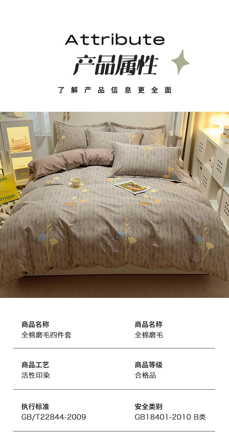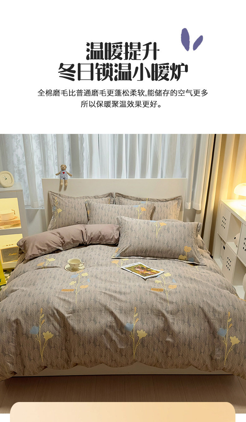 2024 new four-piece cotton cotton sanding thickened bed sheet quilt cover Nantong bedding autumn and winter