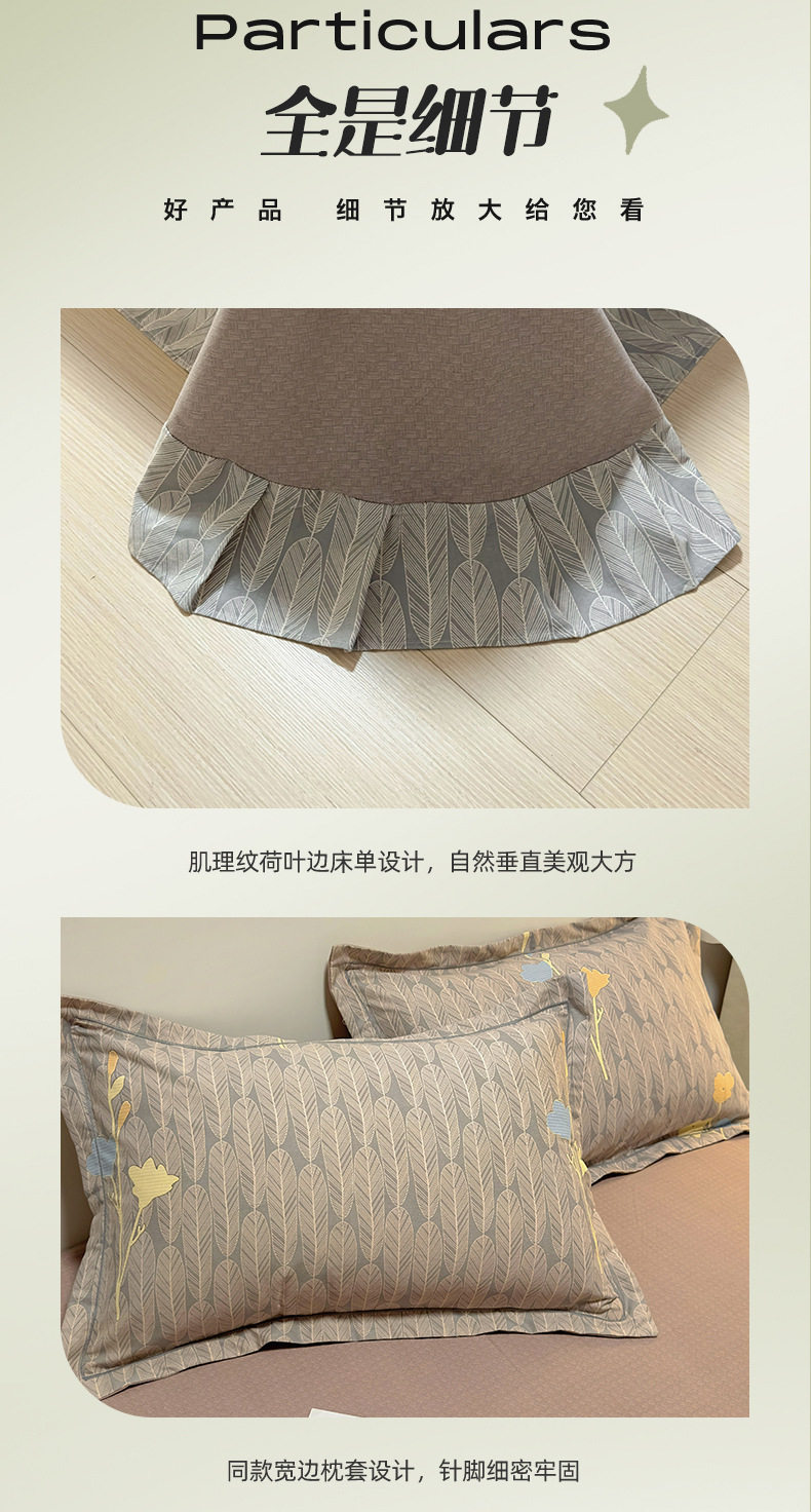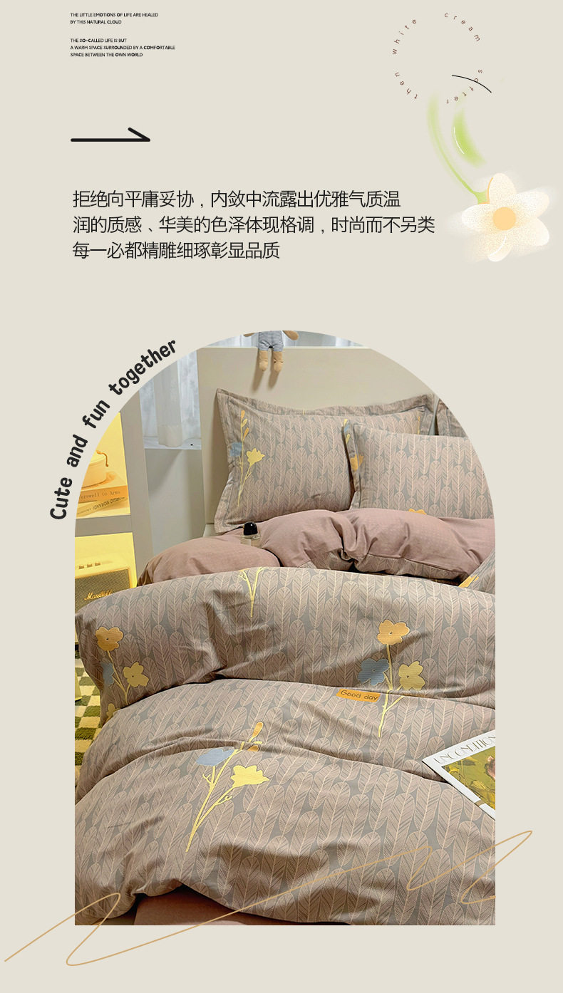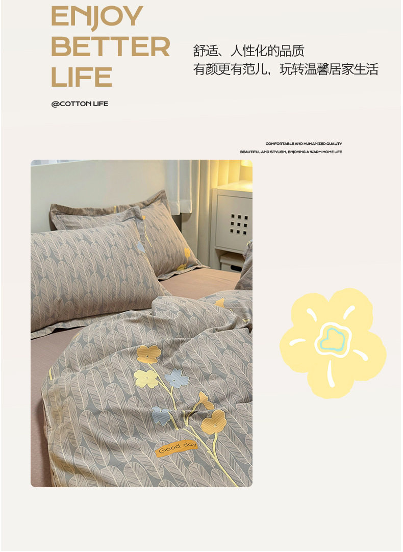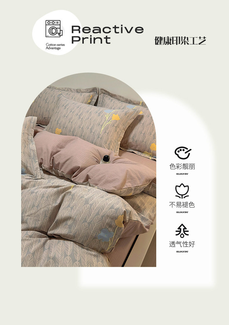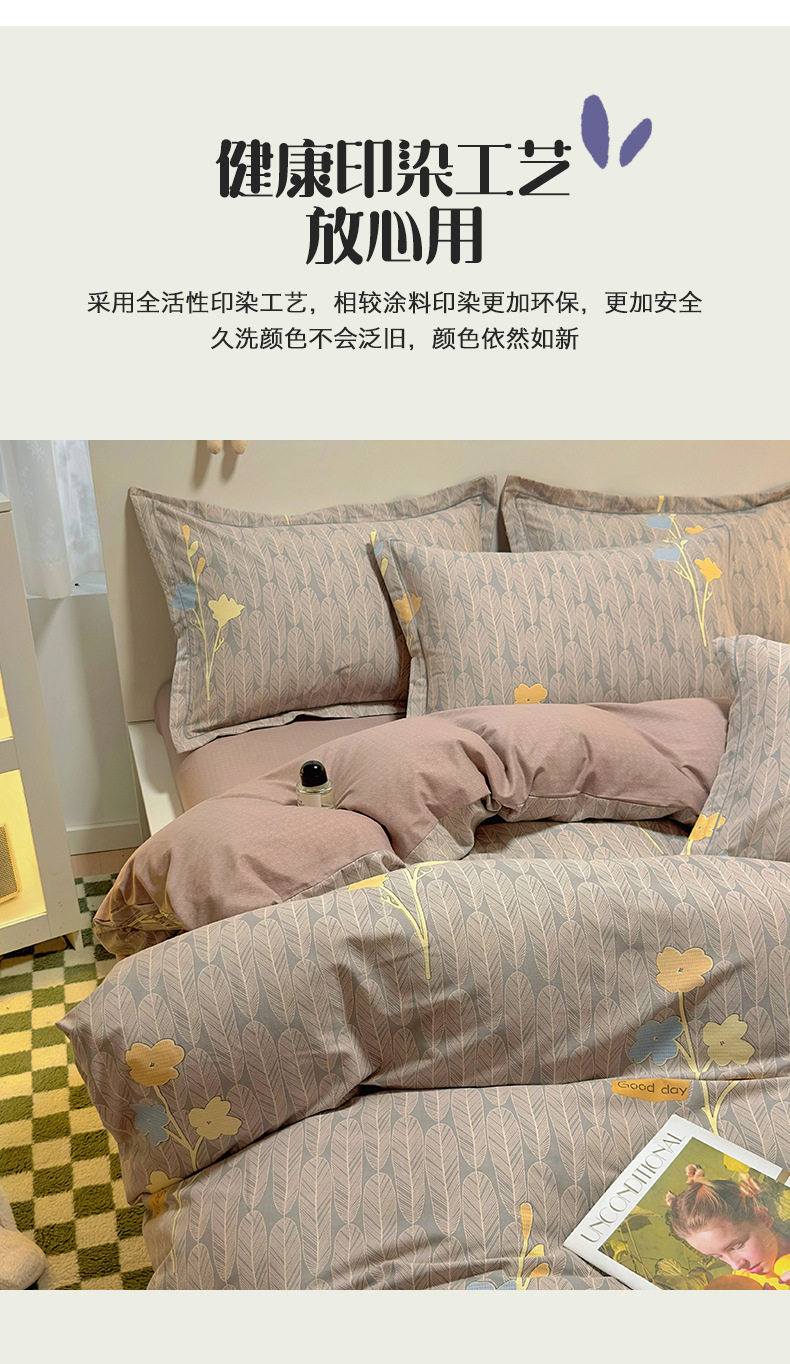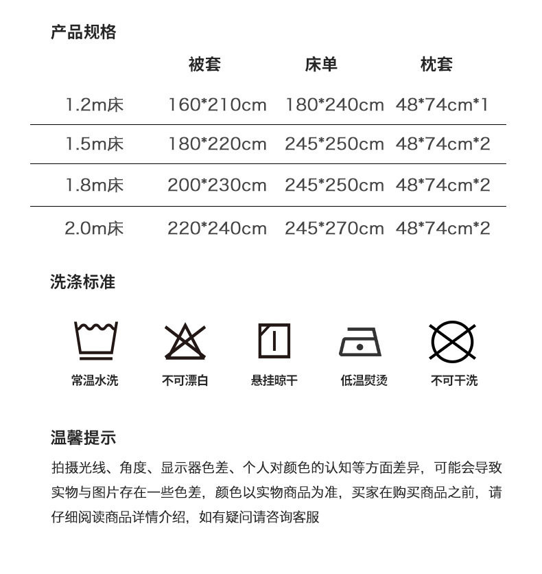 | Size specifications | 1.2 bed [three-piece bed sheet set] - suitable for 150*200cm quilt core,1.5 beds [sheet set of four] - suitable for 180*220cm quilt core,1.5 beds [sheet set of four] - suitable for 200*230cm quilt core,1.8 beds [sheet set of four] - suitable for 200*230cm quilt core,2.0 bed [sheet set of four] - suitable for 220*240cm quilt core,1.5 beds [fitted sheet set of four] - suitable for 200*230cm quilt core,1.8 beds [fitted sheet set of four] - suitable for 200*230cm quilt core |