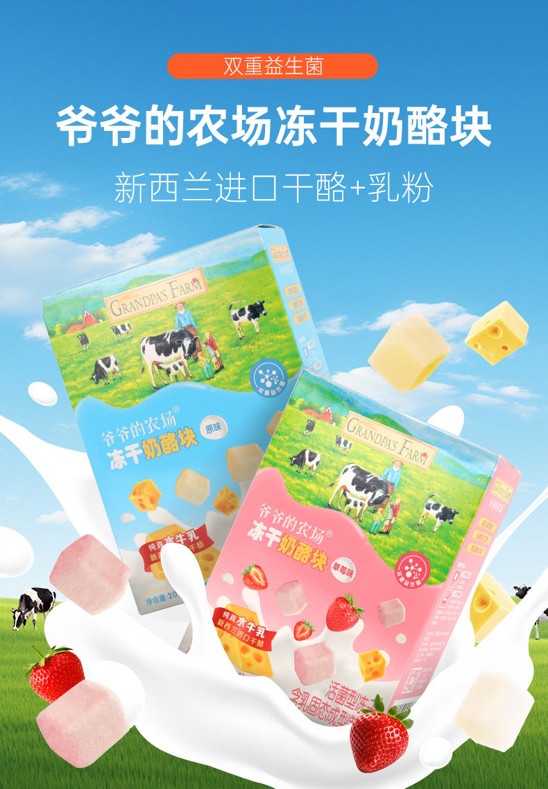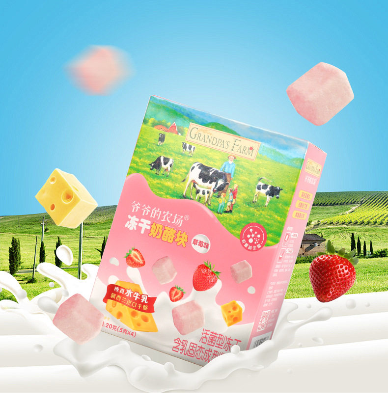 Grandpa's Farm Freeze-dried Cheese 20g(4 Pack) Strawberry Flavor Original Instant Cheese Snack Cheese Fast