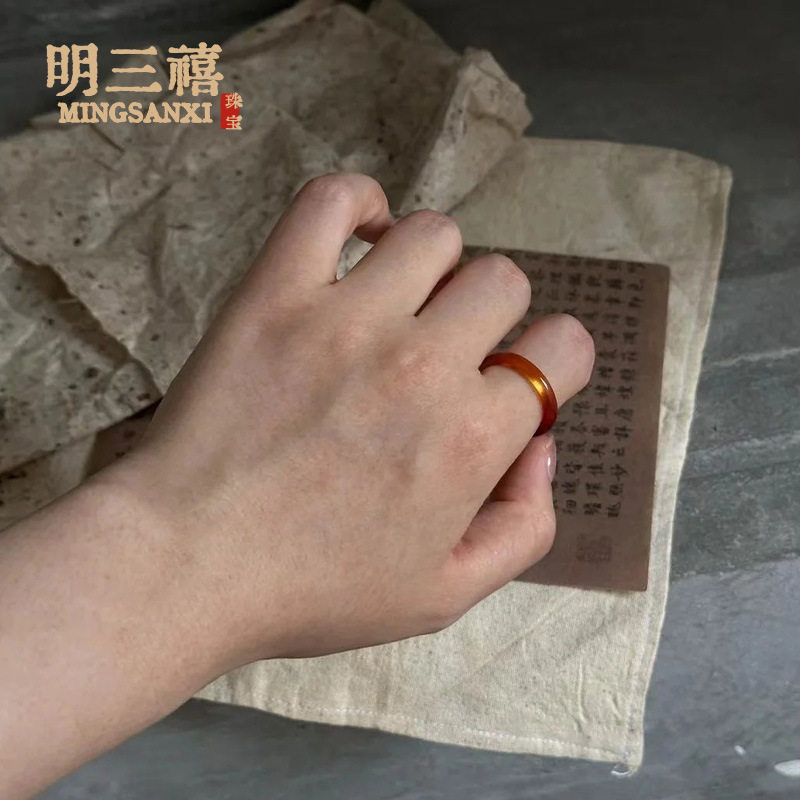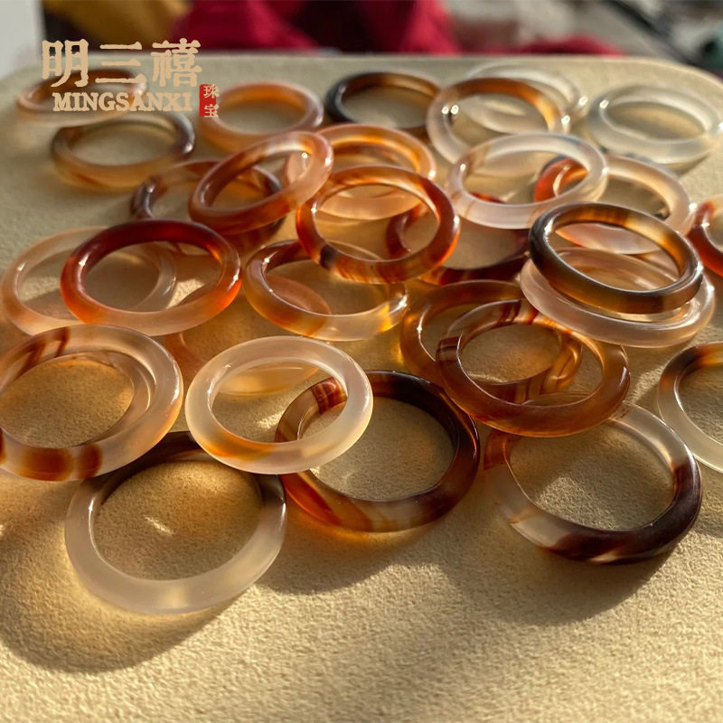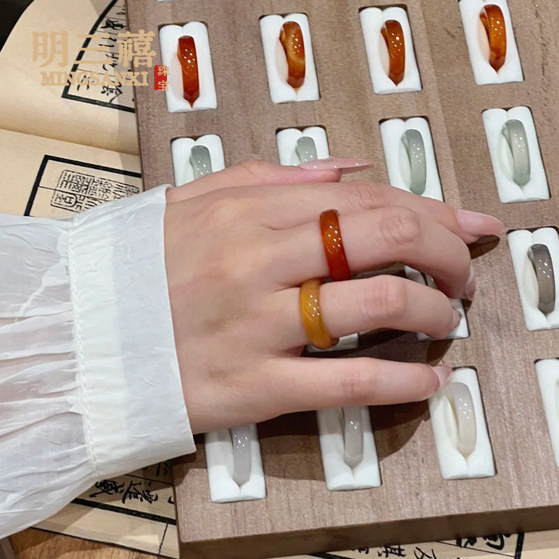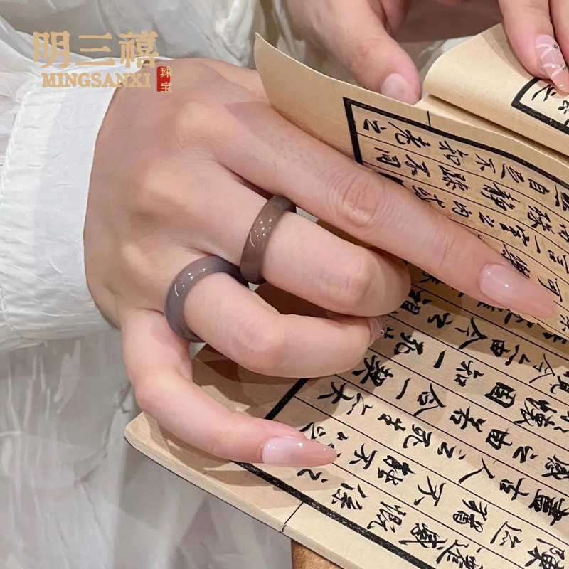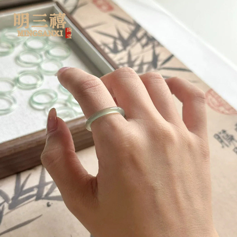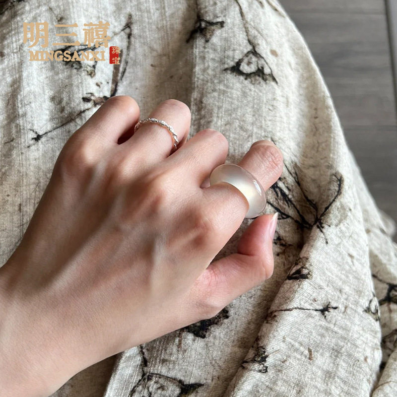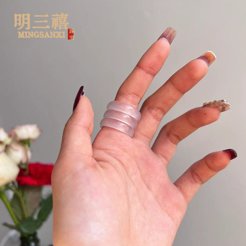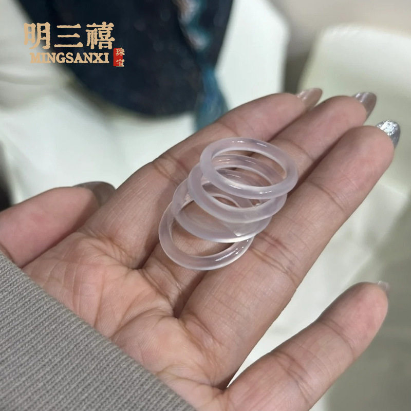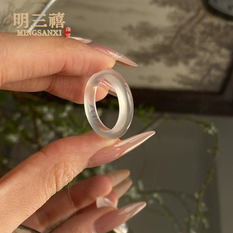 White Ice Natural High Ice Madagascar Chalcedony Ring Fine Ring Ring Men's and Women's Fashion Jewelry
