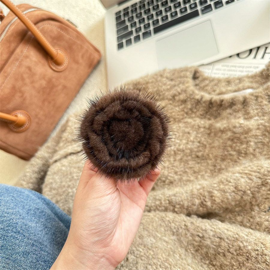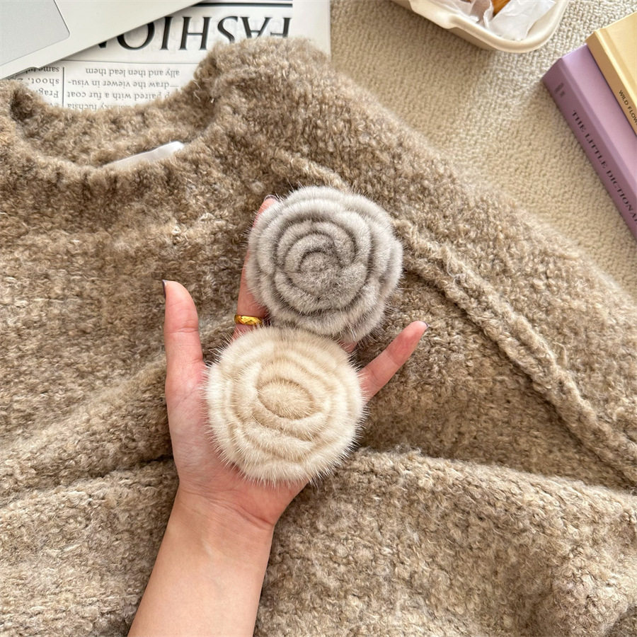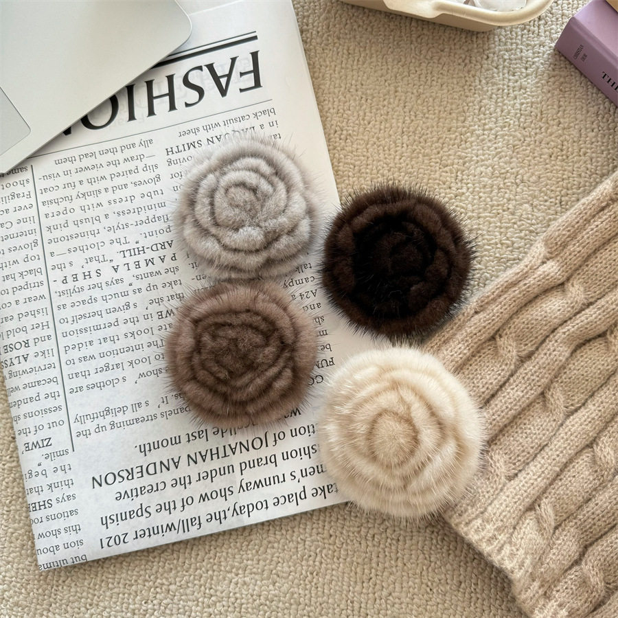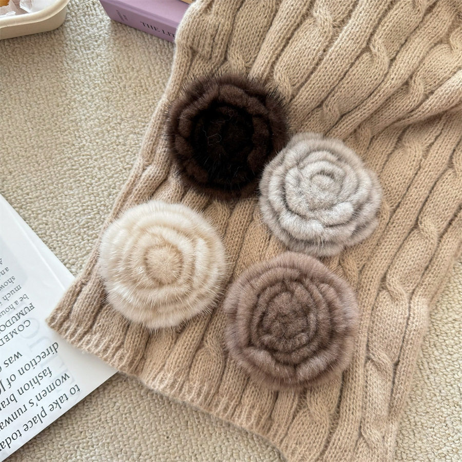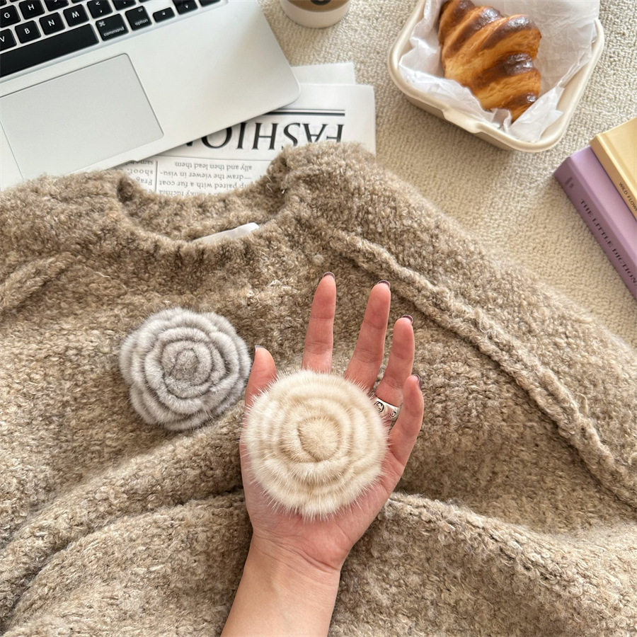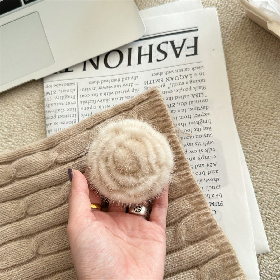Korean-style autumn and winter mink hair rose brooch temperament all-match collar pin clothes scarf accessories sweater coat pin