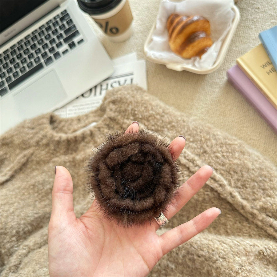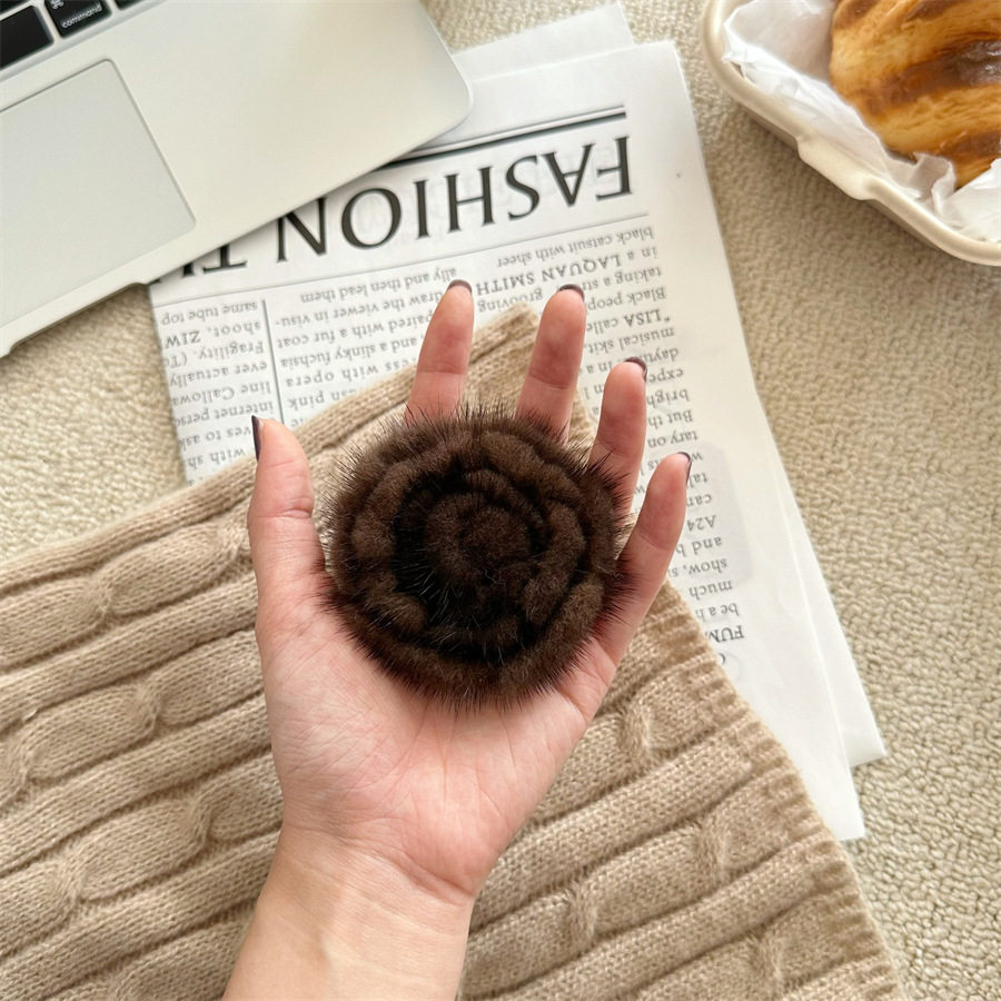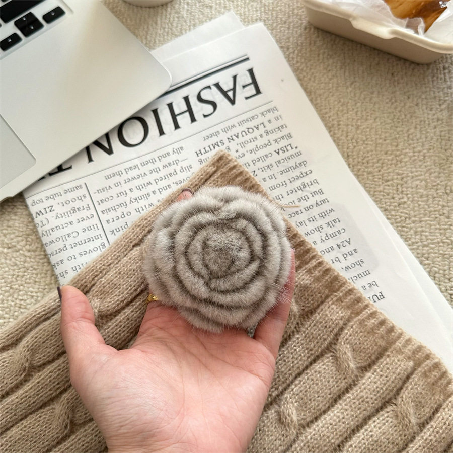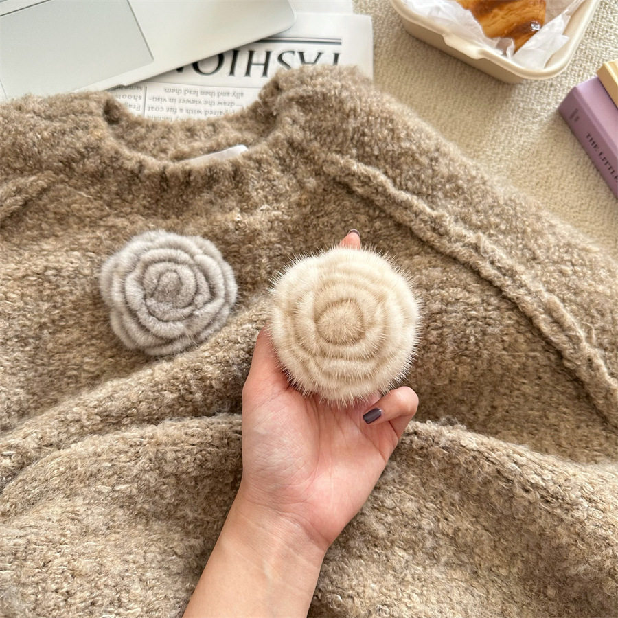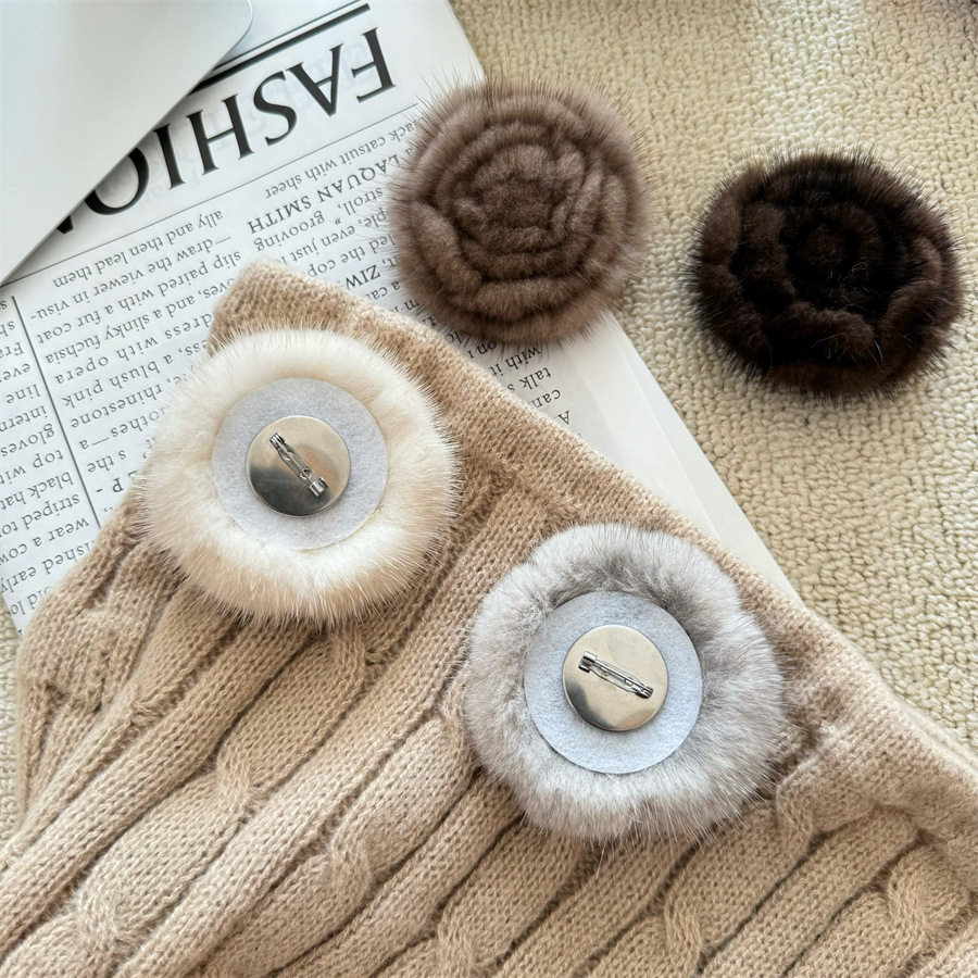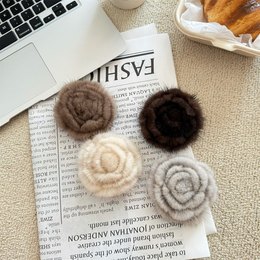 Korean-style autumn and winter mink hair rose brooch temperament all-match collar pin clothes scarf accessories sweater coat pin
