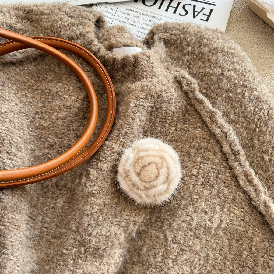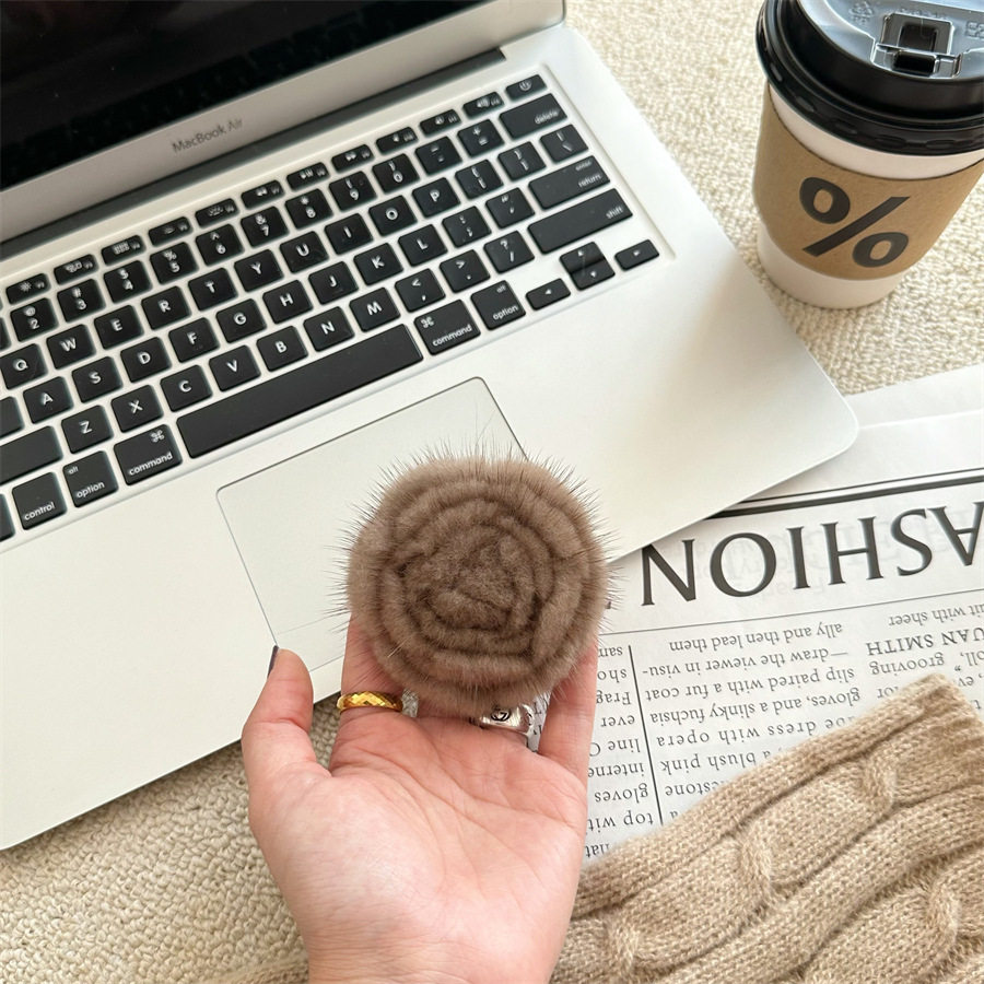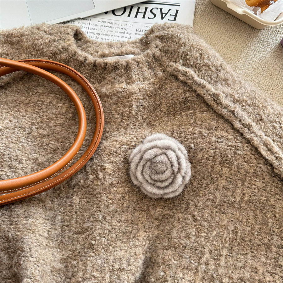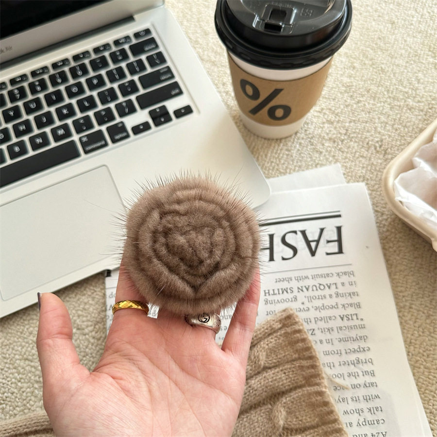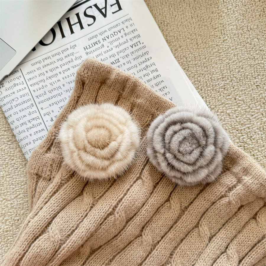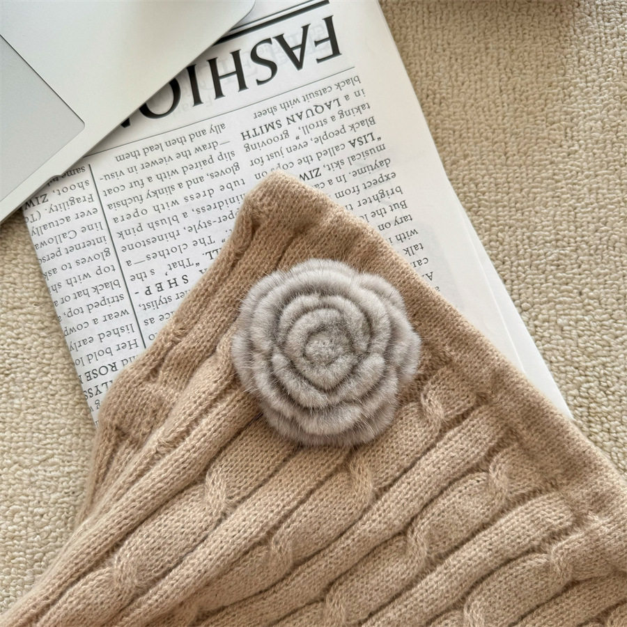 Korean-style autumn and winter mink hair rose brooch temperament all-match collar pin clothes scarf accessories sweater coat pin