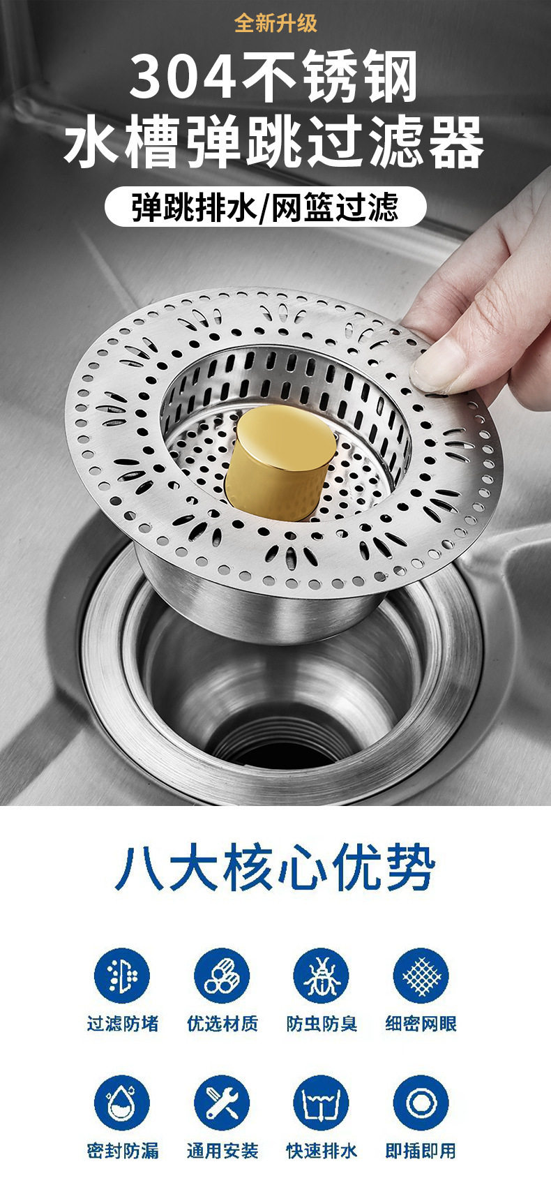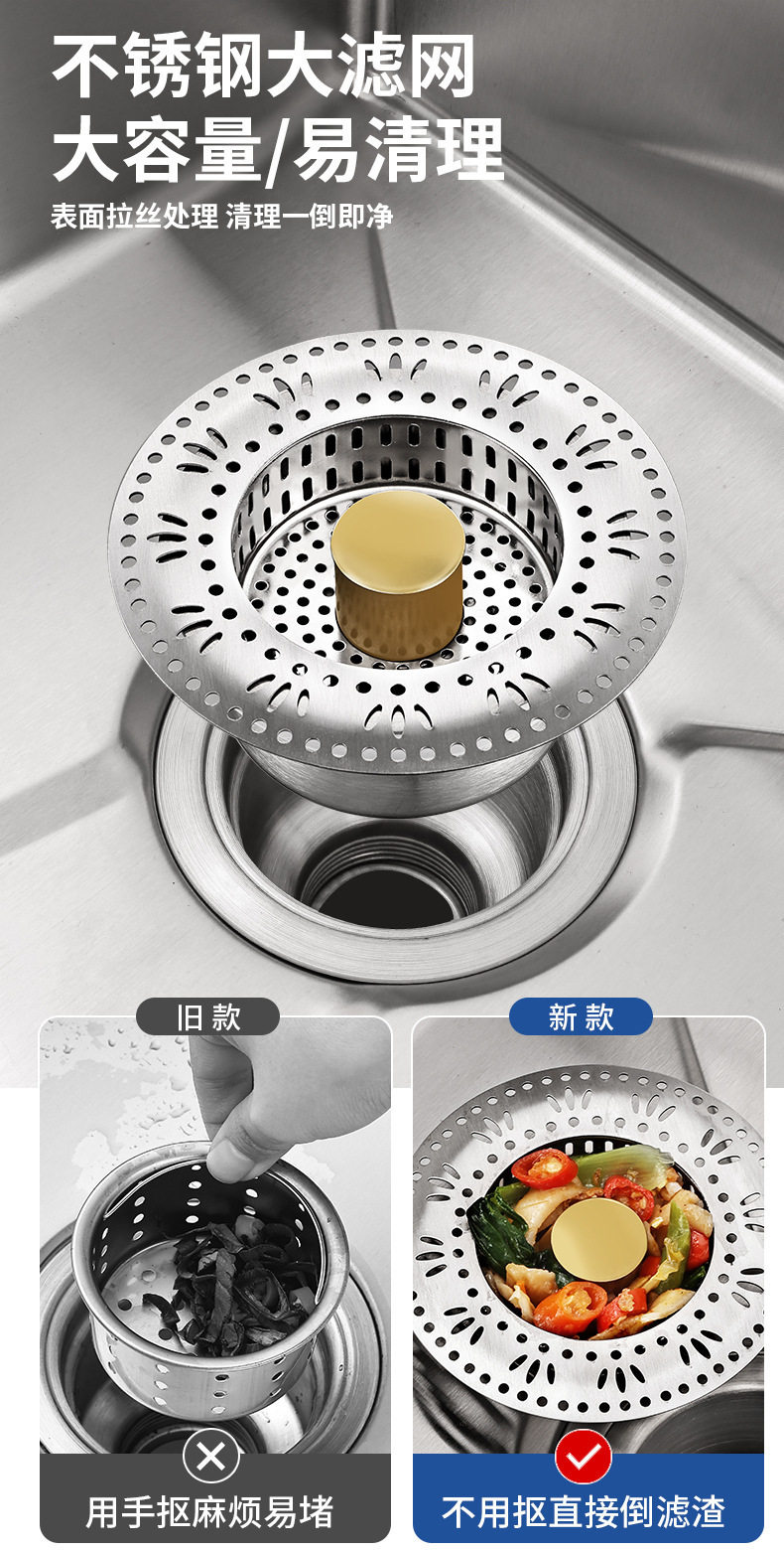 New Upgraded GB Flower Type Stainless Steel Sink Kitchen Vegetable Washing Pool Stainless Steel Filter Sink Sink Bounce Filter