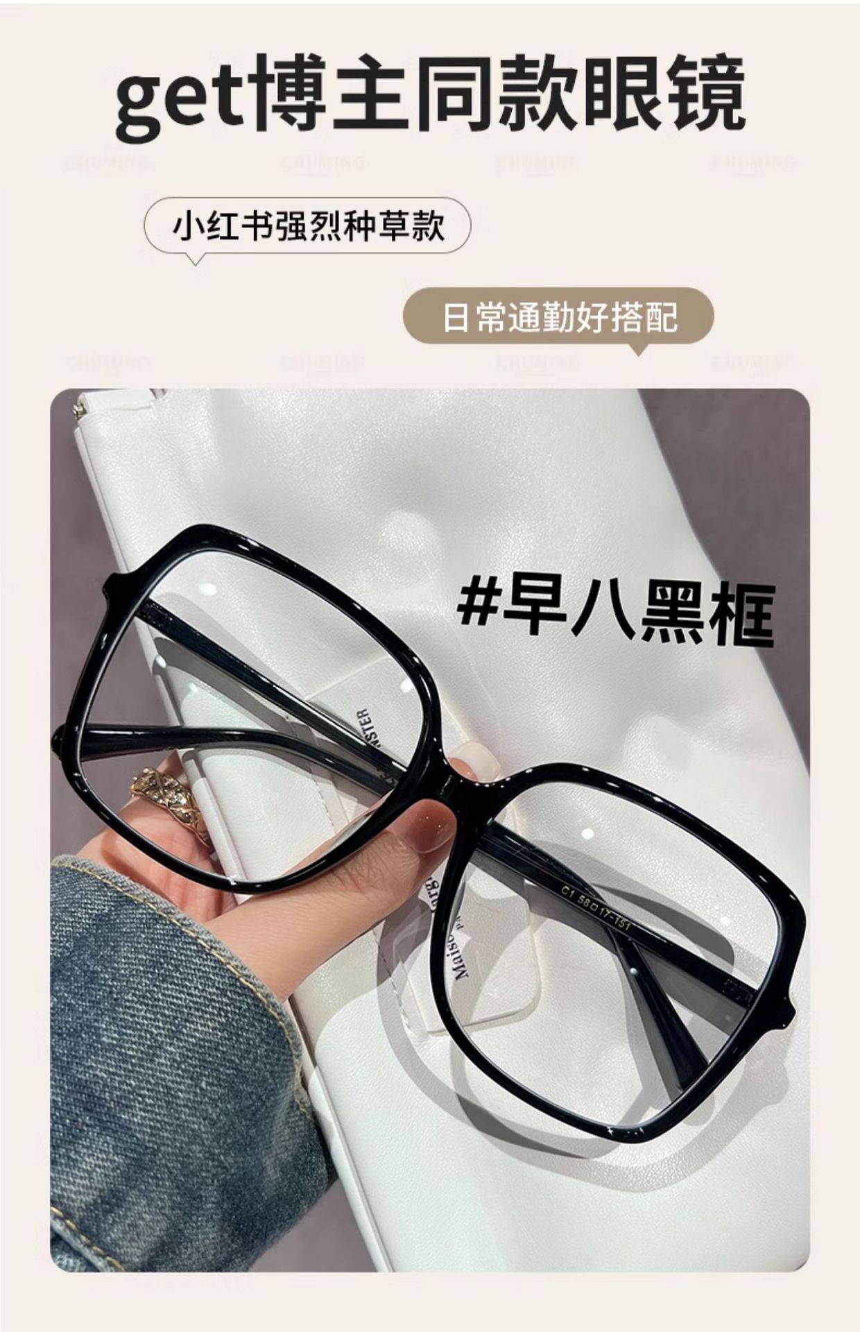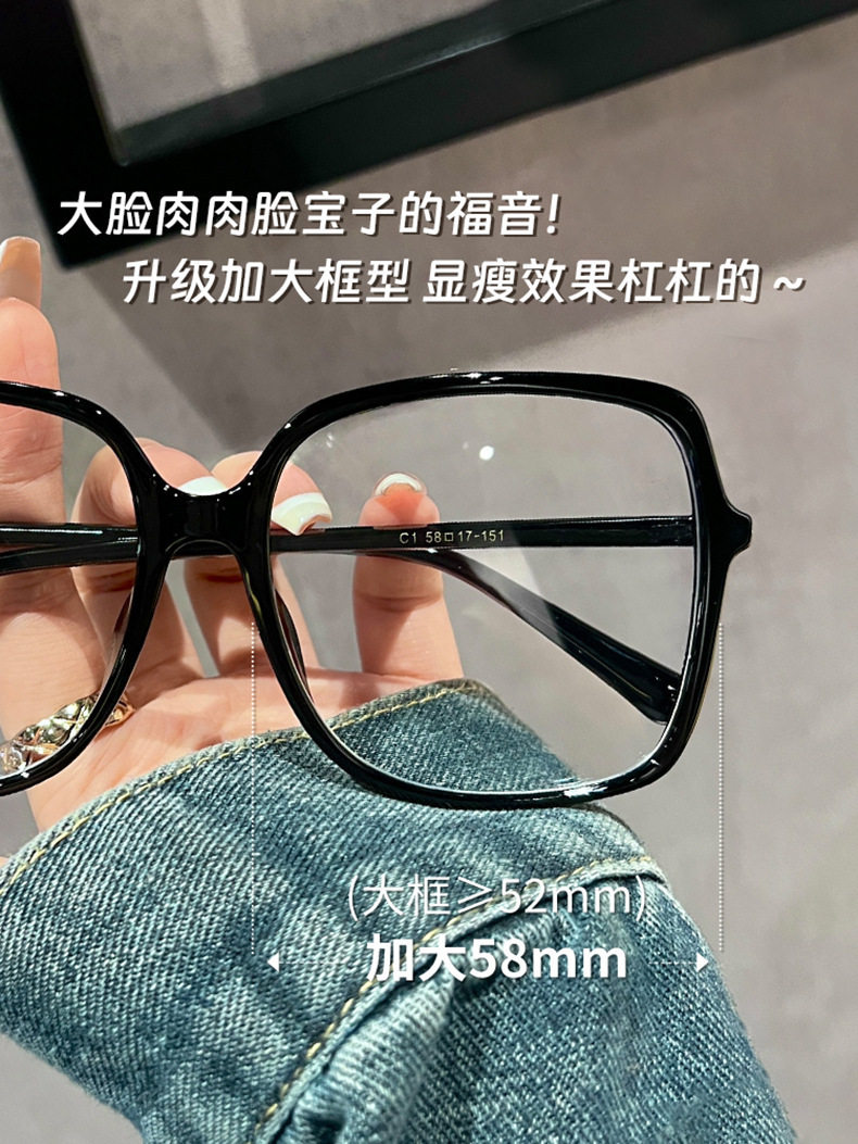 Large Frame, Big Face, Slimming Look Black Frame Glasses for Women, Early Eight High-Looking, No Makeup Artifact, Can Be Equipped with Prescription Lens Glasses Frames
