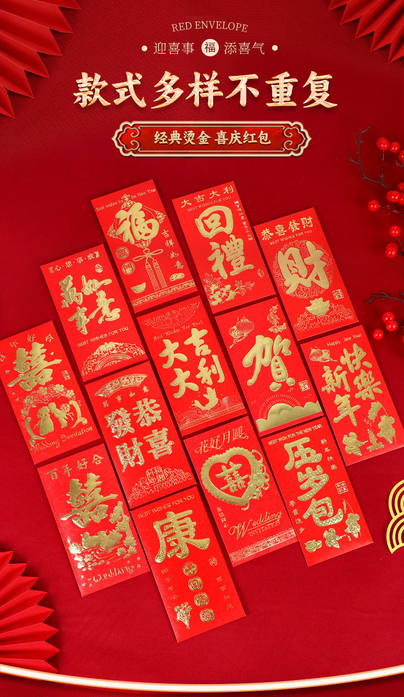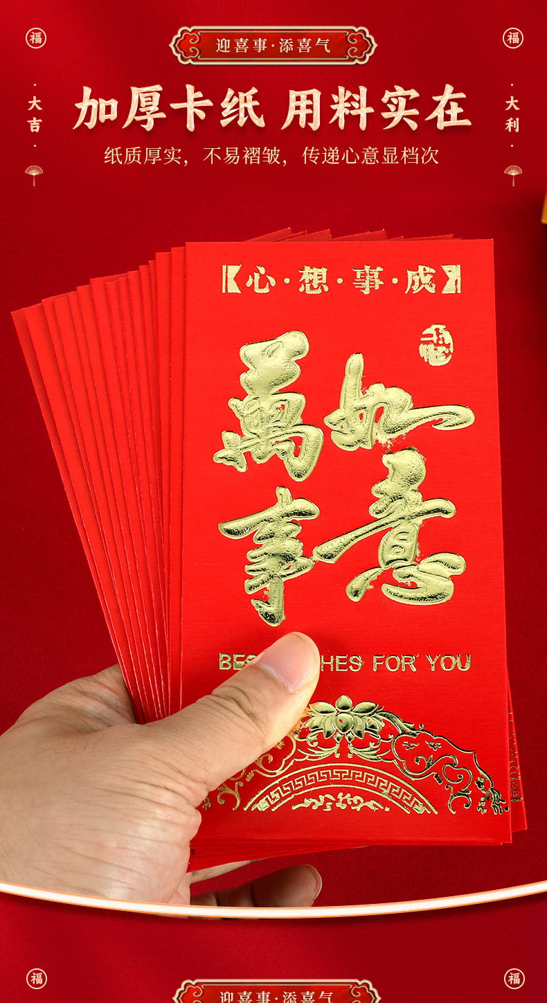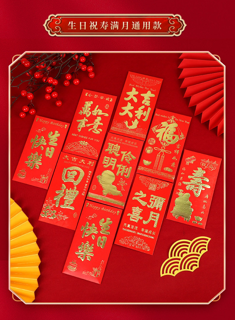 | Color | Full moon joy,Housewarming,A hundred years of good cooperation,Wealth,Smart,Good luck,Show off your ambitions,Blessing,Congratulations on getting rich,Congratulations,Flower garden,Return gift,Award,Happy wedding,Gold list title,Happy opening,Dragon and phoenix are happy,Happy birthday,Longevity,All the best,No words,Happy new year,New year's bag,Smooth sailing,Forever together,Yuanyangxi,Get well soon,Chinese knot |