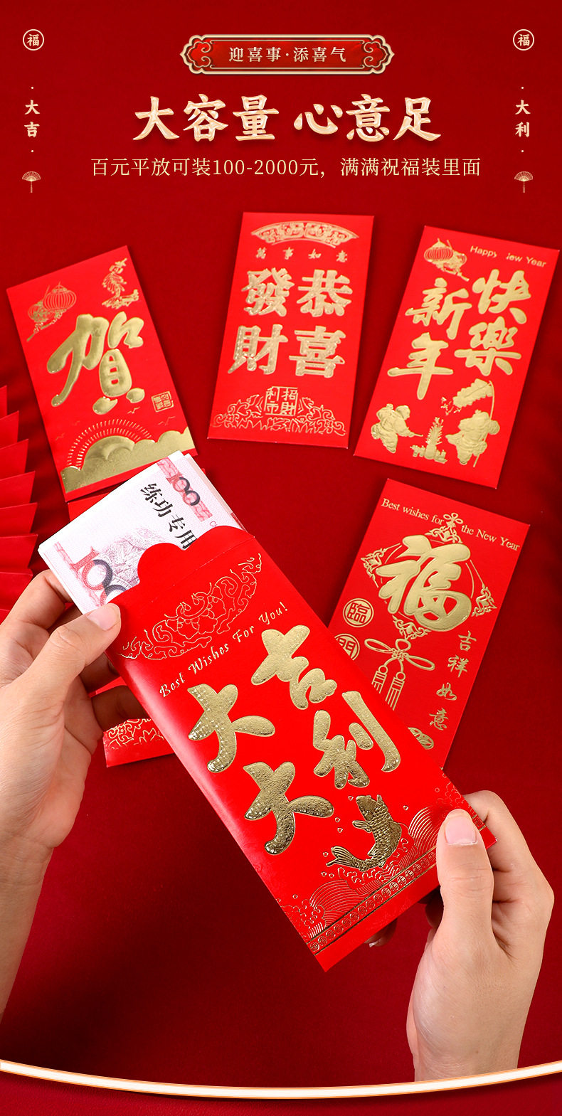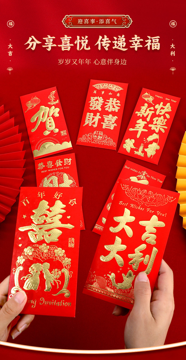 Creative New Year's profit is a red envelope personalized wedding supplies hundred yuan one thousand yuan year old red envelope bag wholesale in large characters