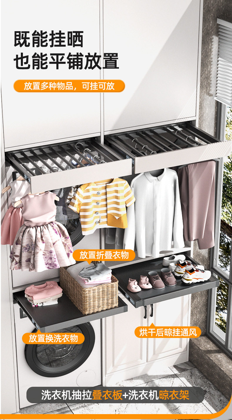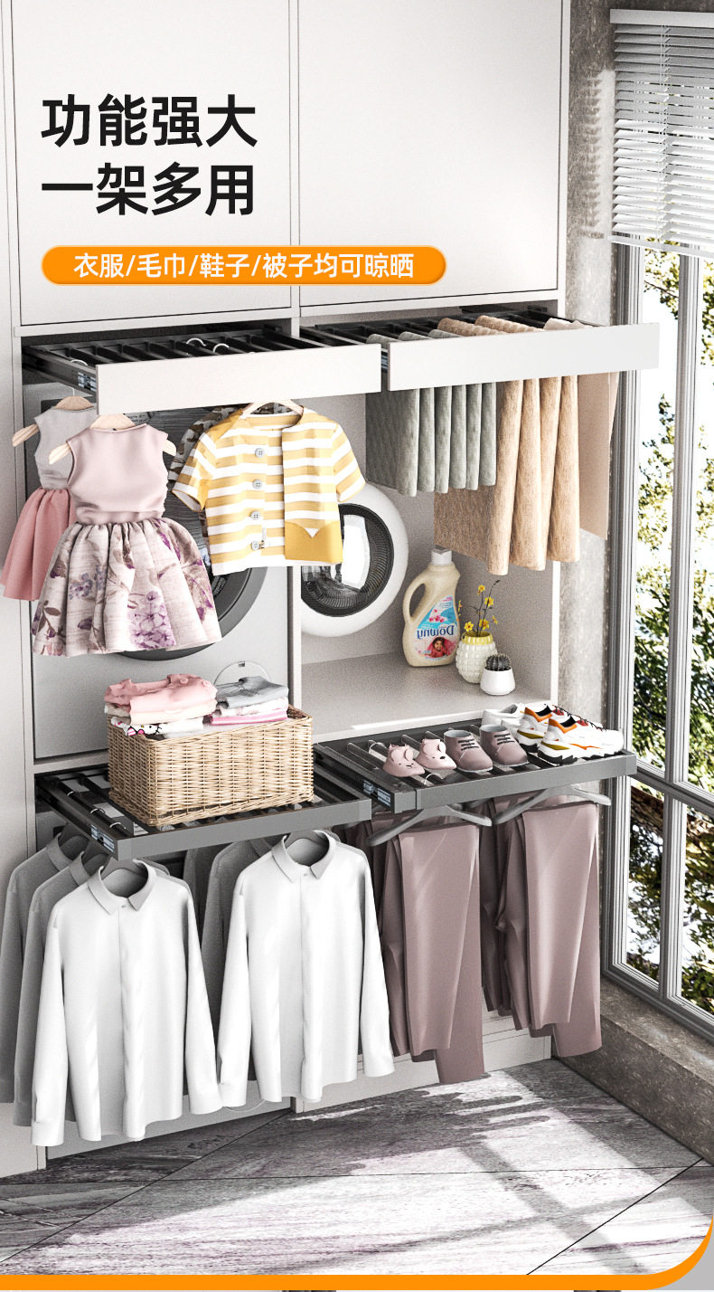 Washing machine invisible pull-out clothes-drying pull-out folding board hidden buffer damping telescopic pants rack wholesale