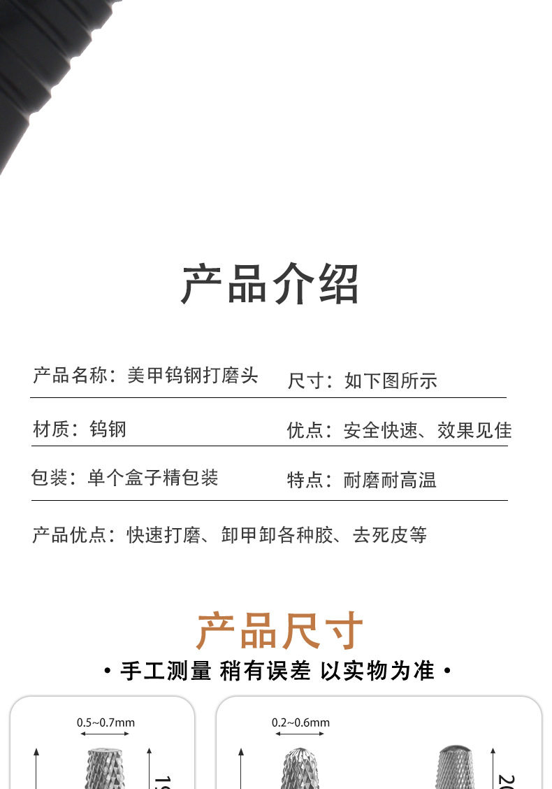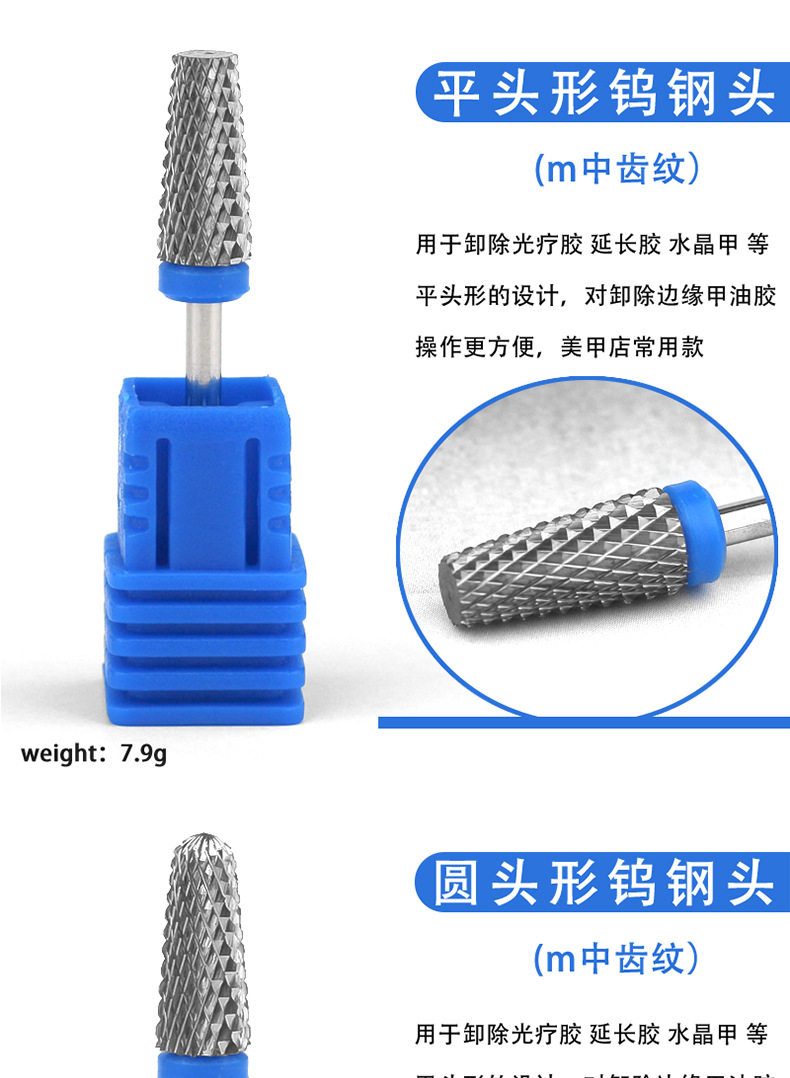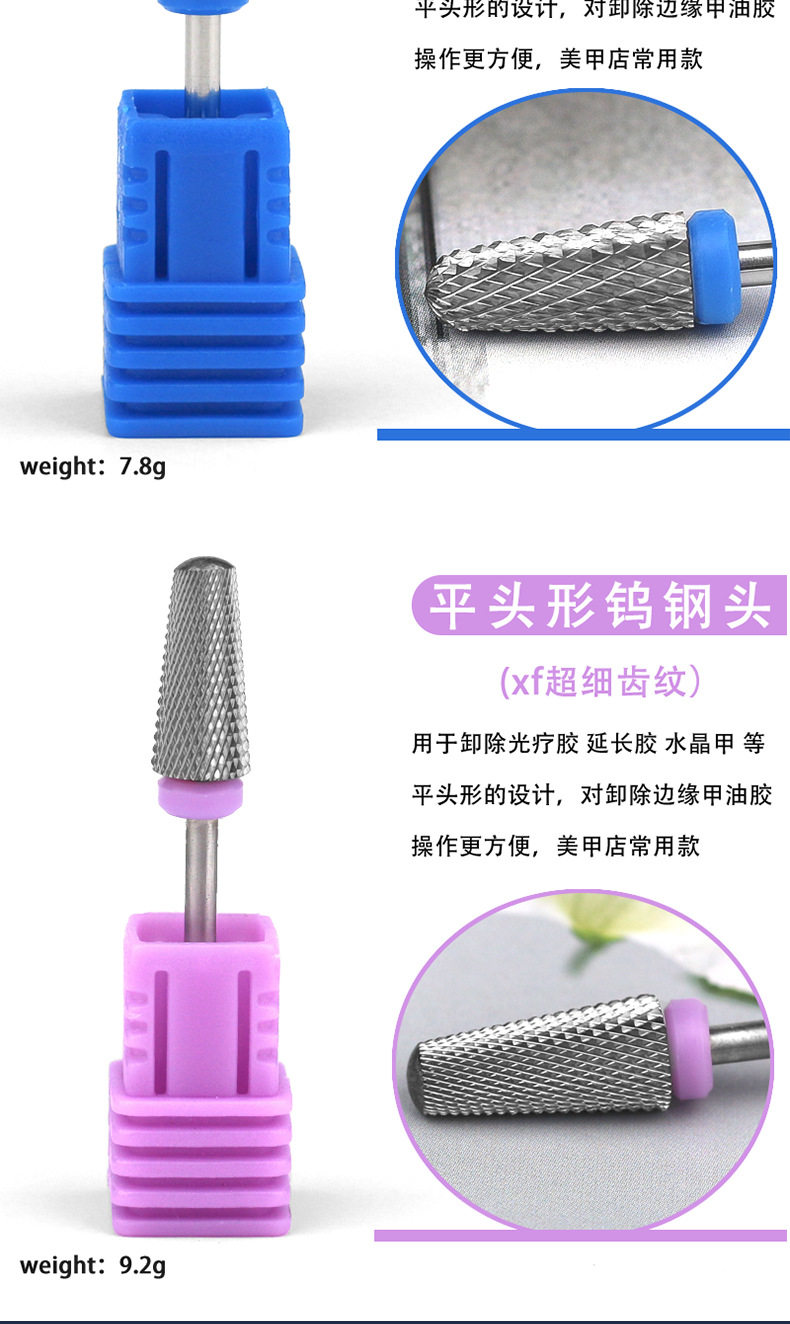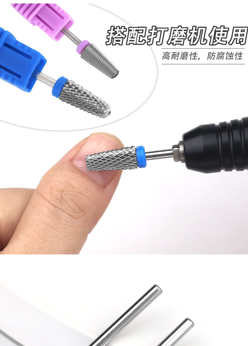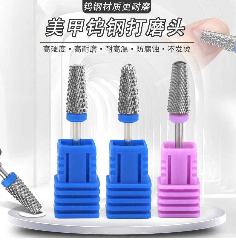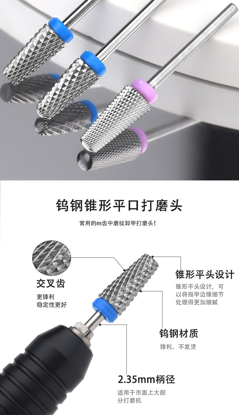 Cross-border New Nail Art Tungsten Steel Grinding Head Conical Exfoliating Sanding Machine Armor Dispel Pre-treatment Sanding Head suit