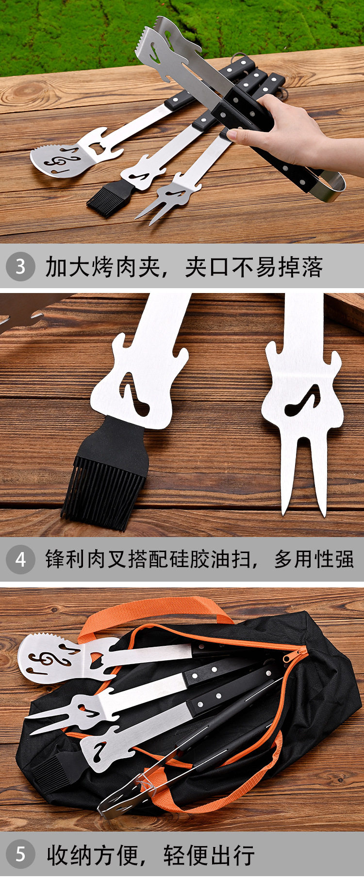 Amazon Outdoor Camping Portable BBQ BBQ Tools Stainless Steel Creative Guitar Baking Tool suit Storage Bag Bag