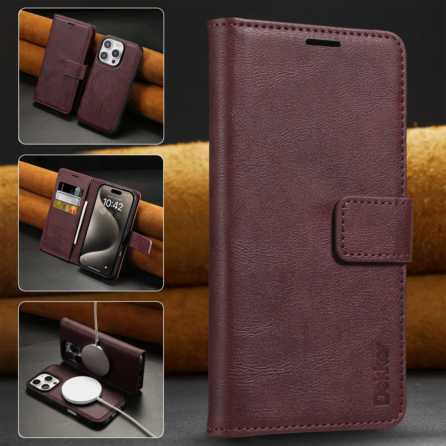 D1 Is Suitable for iPhone 17 Pro Max Wireless Charging Leather Case, Apple 16 Pro Magnetic Two-In-One Split Protection