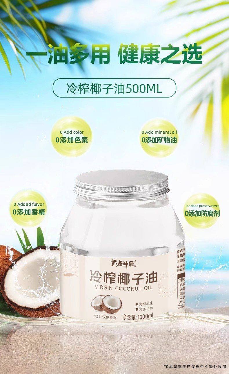 Coconut Oil 500/ml Cold Pressed Edible Oil Virgin Milk Fragrance Hainan Commercial Cold Pressed Coconut Oil Baking Stall Household