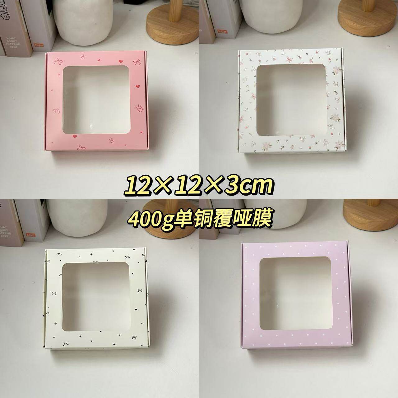 | Specifications and models | Window beige bow;12x12x3cm,Window white crushed flowers;12x12x3cm,Window white blue floral;12x12x3cm,Open window retro floral; 12x12x3cm,Window blue polka dots;12x12x3cm,Window green plaid;12x12x3cm,Window purple striped floral; 12x12x3cm,Window red plaid;12x12x3cm,Window pink polka dots;12x12x3cm,Window pink heart;12x12x3cm,Pink bow polka dots;13x13x3cm,Blue plaid;13x13x3cm,Pink plaid;13x13x3cm,Blue stripesfloral;13x13x3cm,Retro floral;13x13x3cm,Pink floral plaid;13x13x3cm,Purple stripes floral;13x13x3cm,Purple plaid;13x13x3cm,Blue polka dots;13x13x3cm,Green butterfly;13x13x3cm,Please contact customer service for customization; 12x12x3cm,Please contact customer service for customization; 13x13x3cm |
