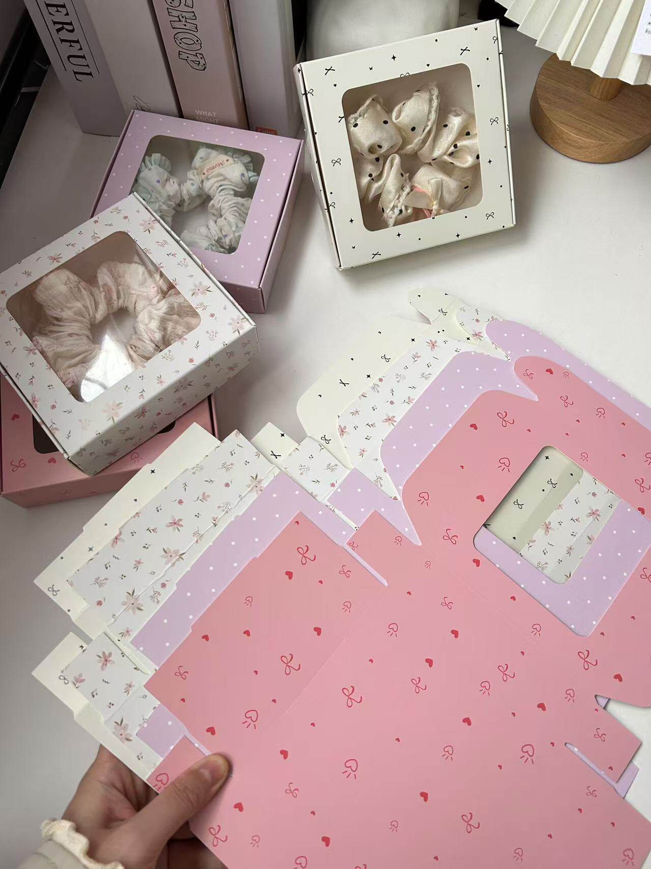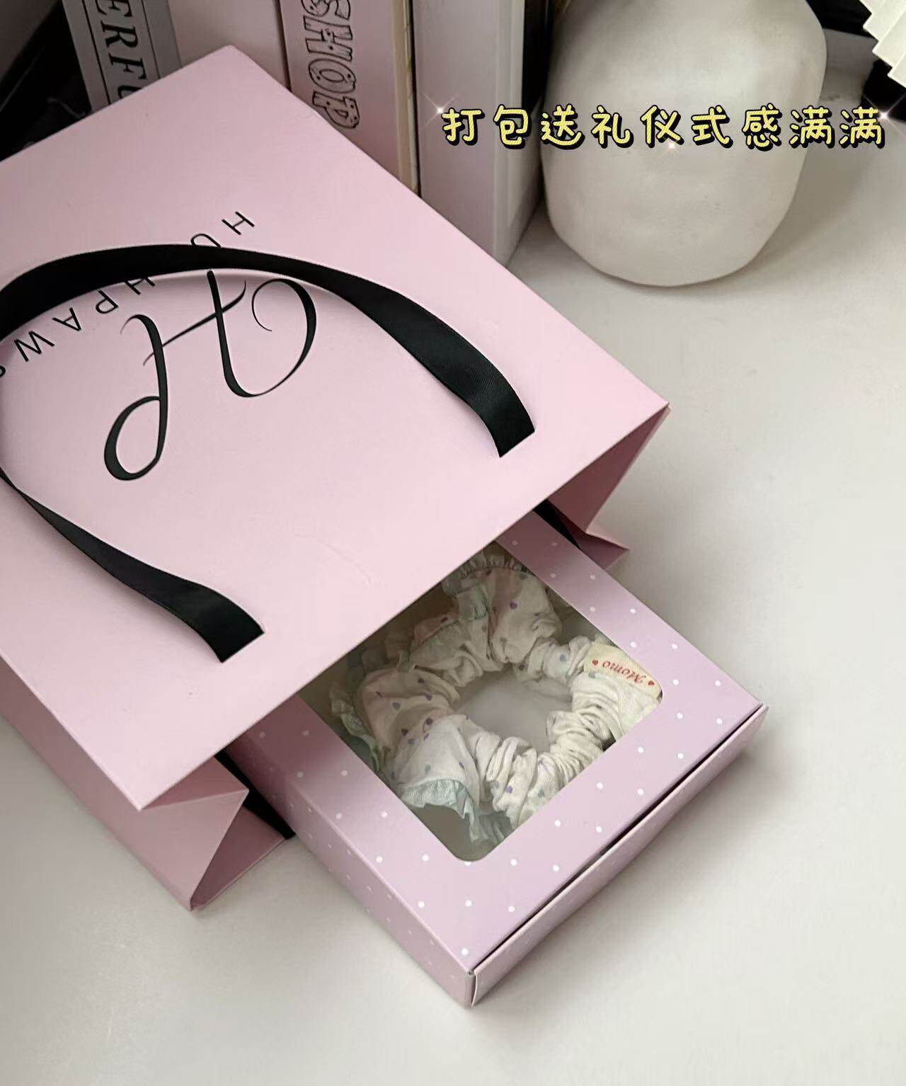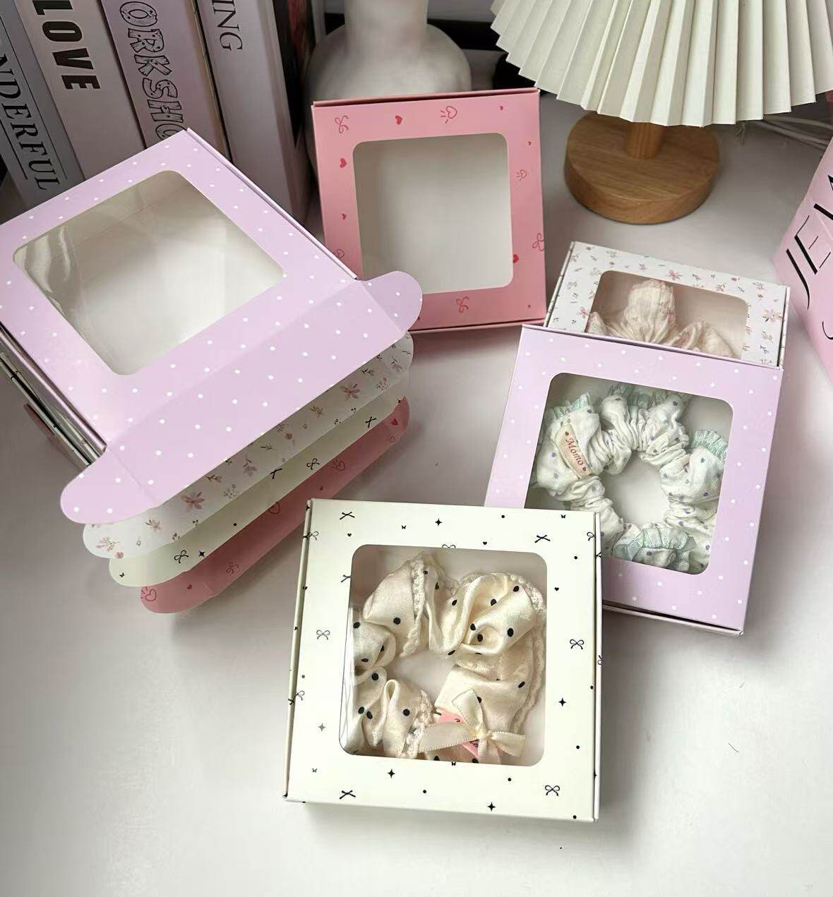 Ins Sausage Loop Hair Accessories Window Gift Box in stock Cute Jewelry Wear Armor Packaging Paper Box Transparent Flying Machine Box