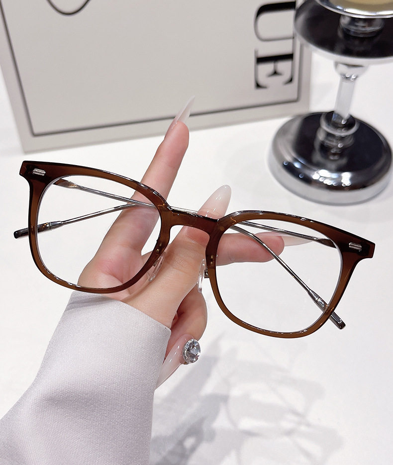 Explosive Internet Celebrity Plain Tea Color Glasses Frame Women's Ultra Light Glasses Frame Retro Anti-blue Light Glasses for Students with Myopia