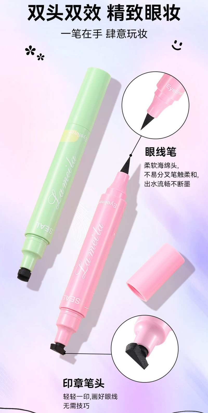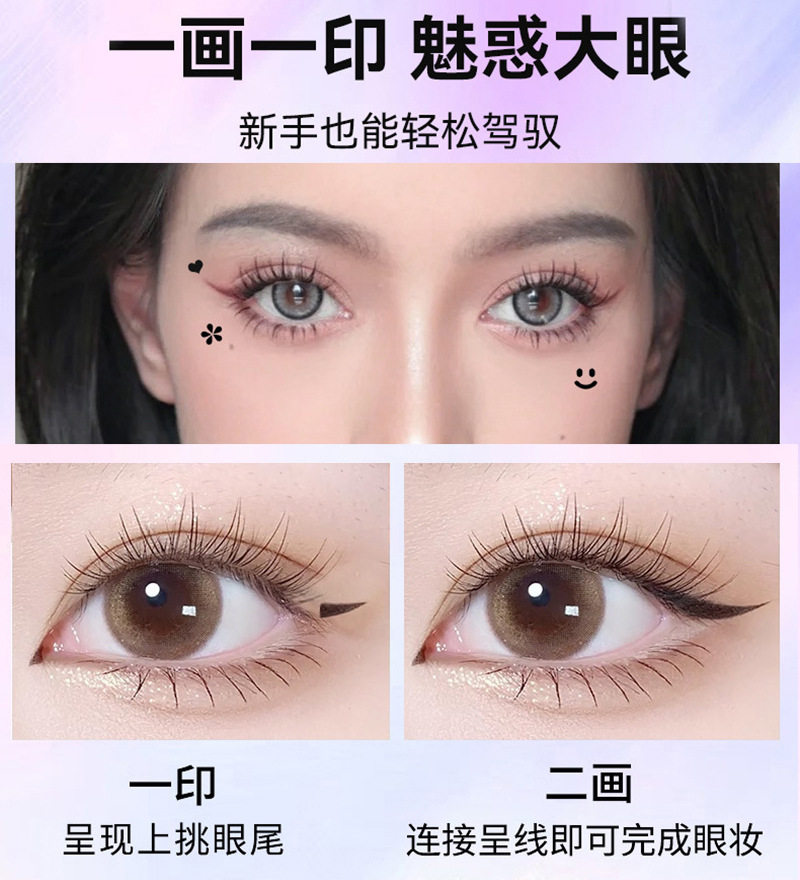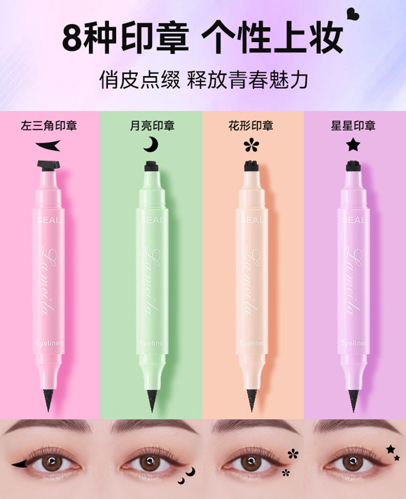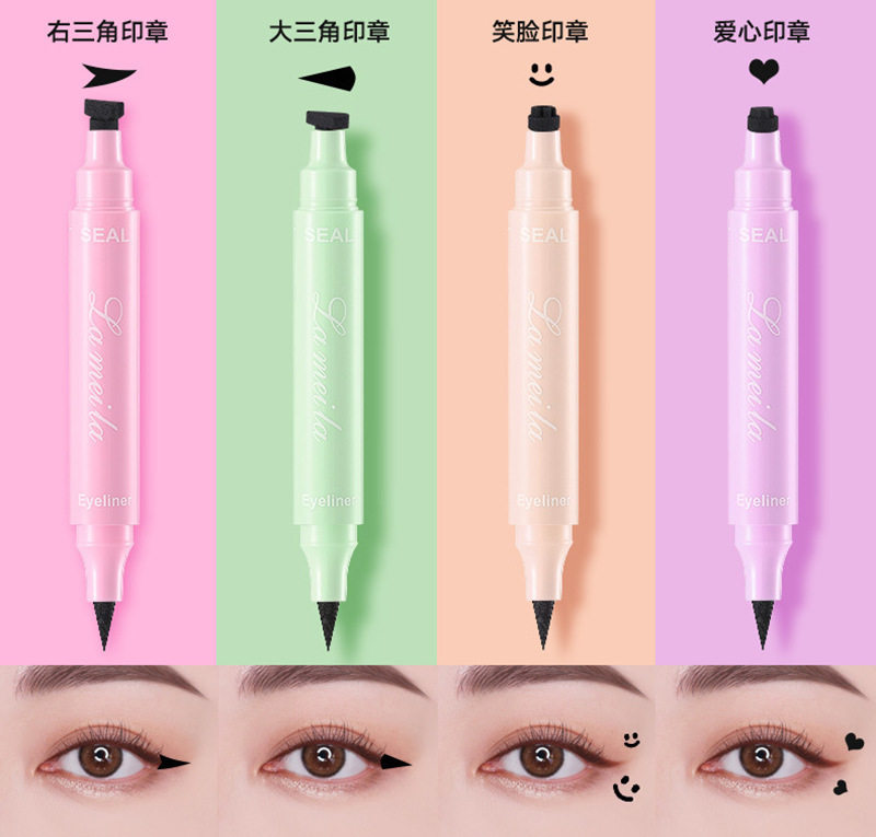 Cross-border double-headed seal eyeliner pen tattoo star smiling face love triangle embellishment pen is not easy to faint eyeliner pen