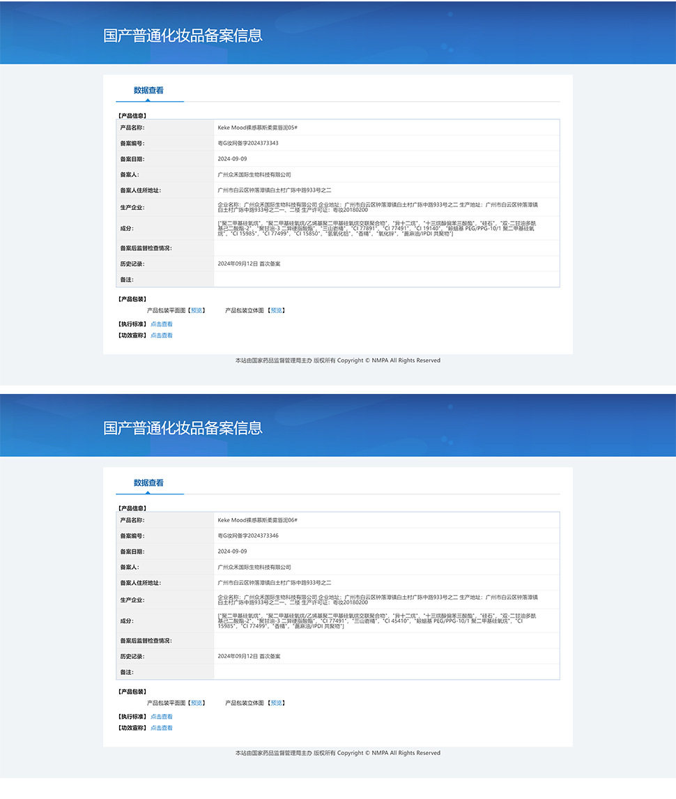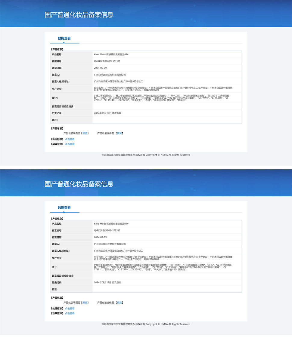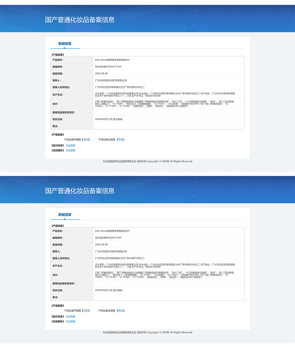 | Extra cosmetics registration certificate number | Guangdong g makeup net preparation word 2024373303 |