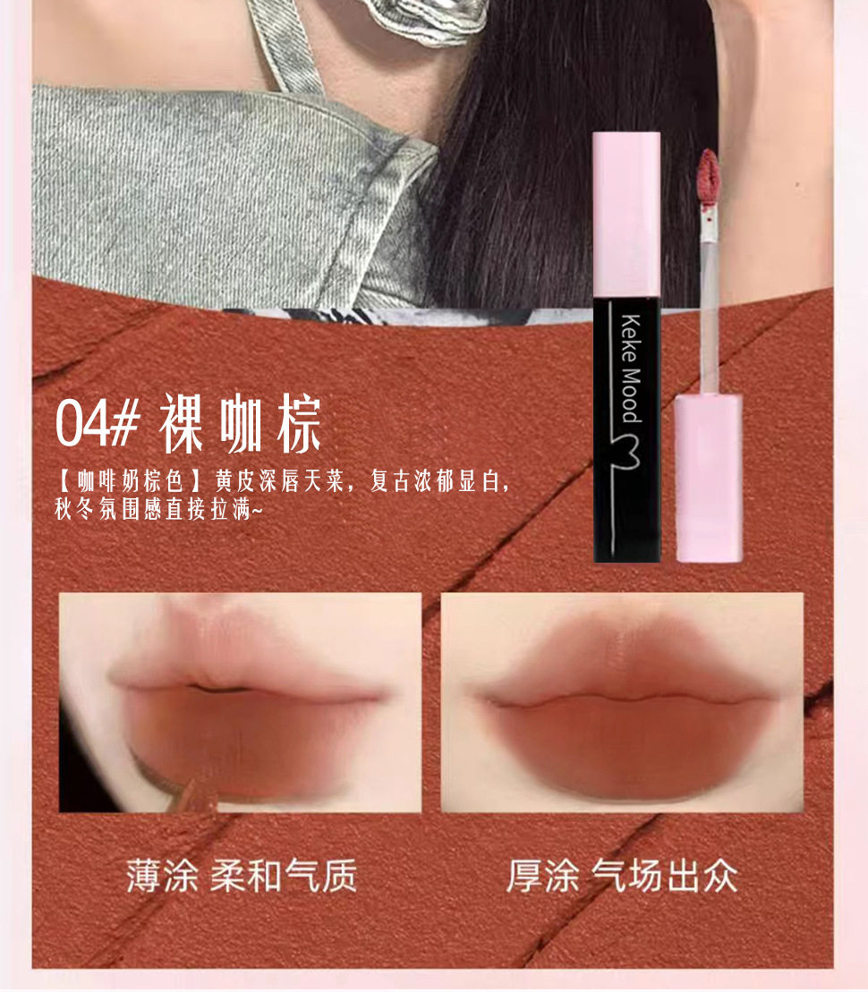 Kekemood Nude Mousse Soft Mist Lip Mud Velvet Matte Matte Non-Fading Student Pure Desire Lipstick Whitening