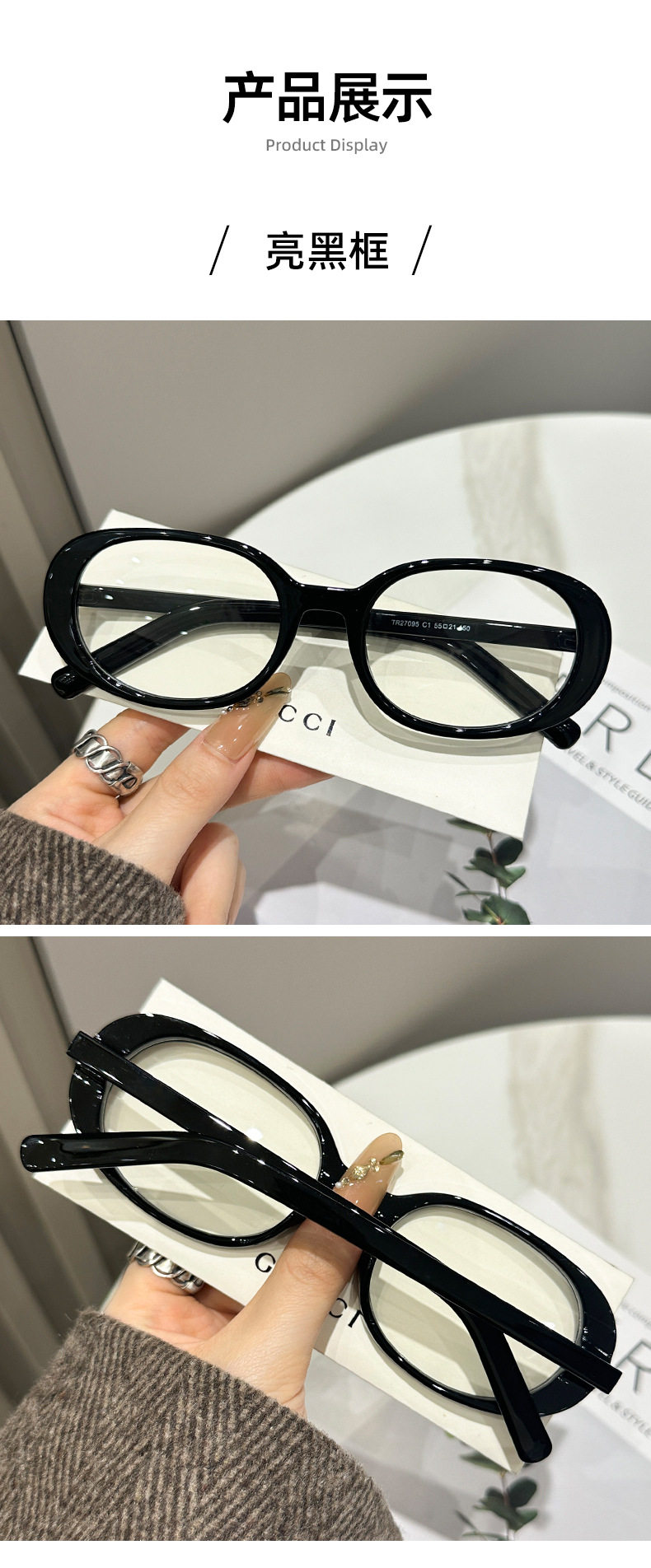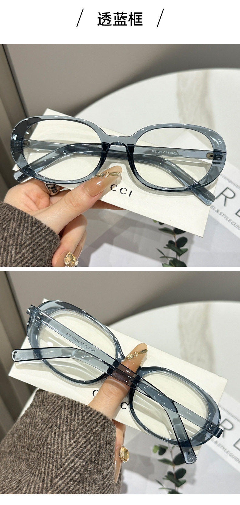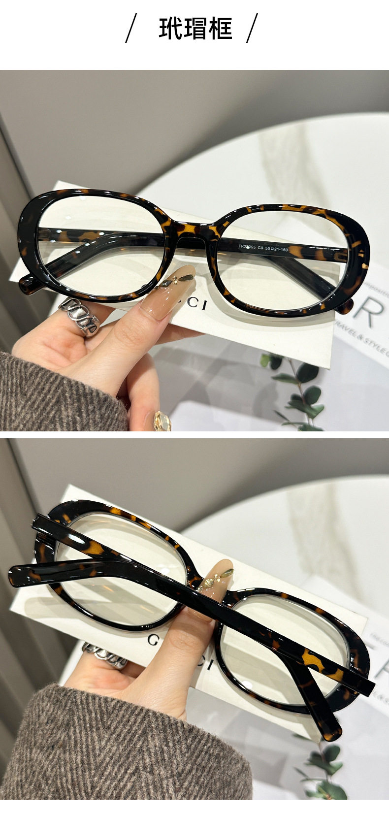 | Glasses style | Oval frame |