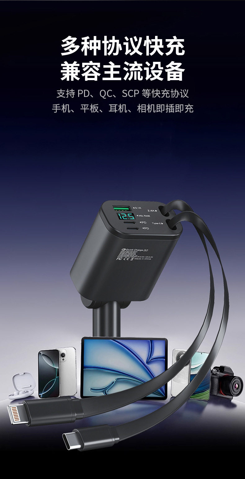 | Title | Car fast charging plug, car charger, cigarette lighter, car charger super fast charging, cigarette lighter car fast charger, car charger car charger, car fast charging charger, telescopic cord car charger |
