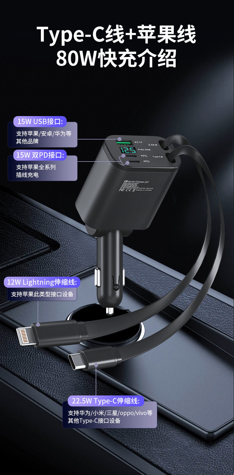 | Title | Car fast charging plug, car charger, cigarette lighter, car charger super fast charging, cigarette lighter car fast charger, car charger car charger, car fast charging charger, telescopic cord car charger |