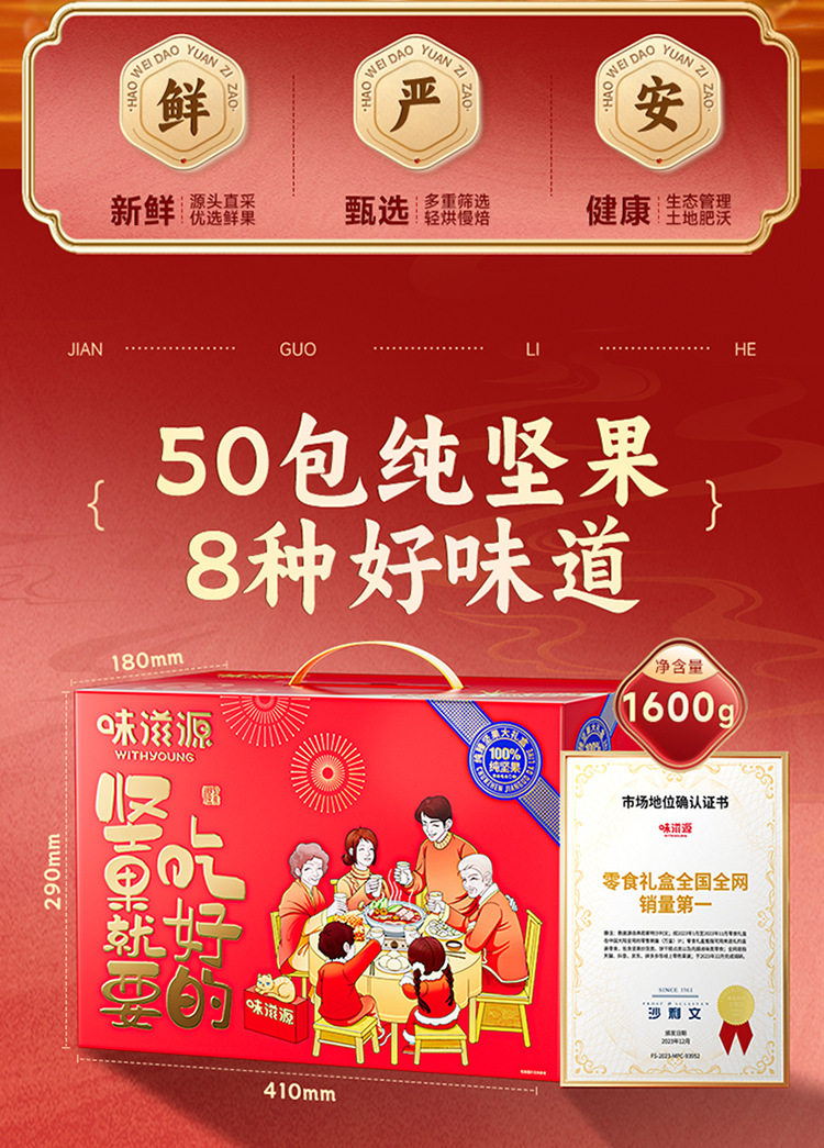 | Packaging specifications | The nuts should be eaten 1600g (50 packs of pure nuts) |