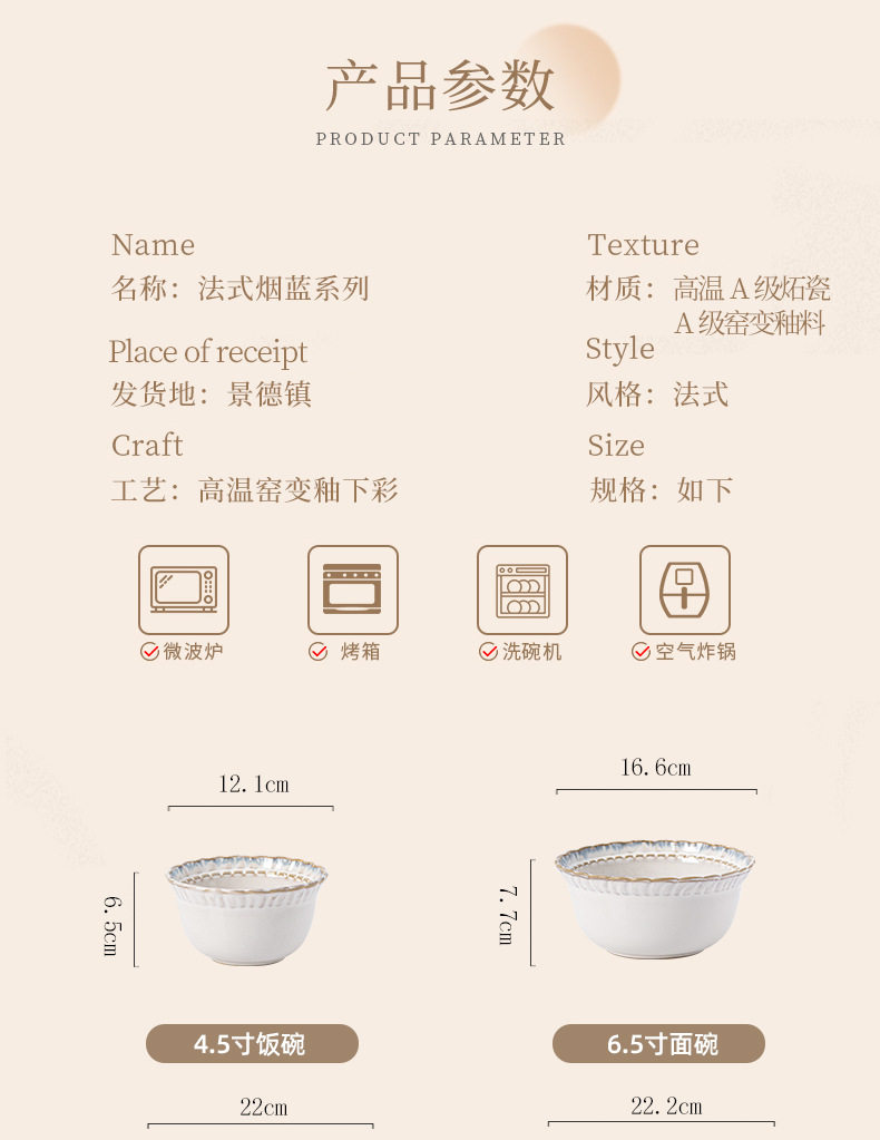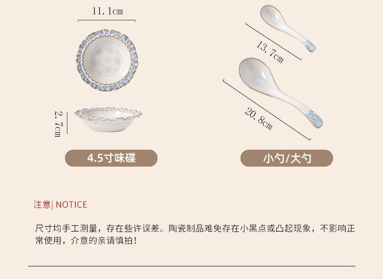 | Color | If you need [set], contact customer service to send a link,Lanyan-- 4.5inch rice bowl [upgraded to flat bottom],Lanyan-- 6.5inch noodle bowl [upgraded to flat bottom],Blueyan-- 6.25inch bone plate [upgraded to flat bottom],Lanyan-- 8.25inch disc [upgraded to flat bottom],Lanyan-- 8.75inch soup plate [upgraded to flat bottom],Lanyan-- 8.25inch square plate [upgraded to flat bottom],Lanyan-- 9.25inch soup bowl [upgraded to flat bottom],Lanyan-- 10.75inch disc [upgraded to flat bottom],Lanyan-- 12.5inch fish plate [upgraded to flat bottom],Blue-coffee cup [upgraded to flat bottom],Lanyan--cup and saucer set [upgraded to flat bottom],Blue-flavored dish [upgraded to flat bottom],Blue-small spoon,Blue-big spoon |