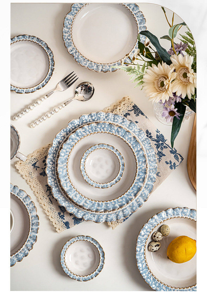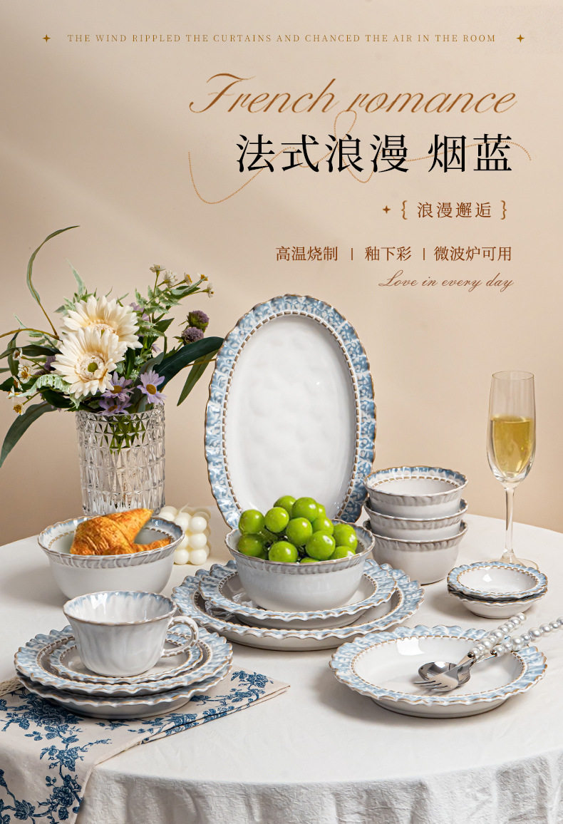 Underglaze Color Bowl Household Ceramic Tableware Set Bowl and Plate Combination Lanyan Dish Set Household Dish Plate Rice Bowl Wholesale