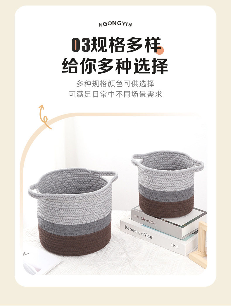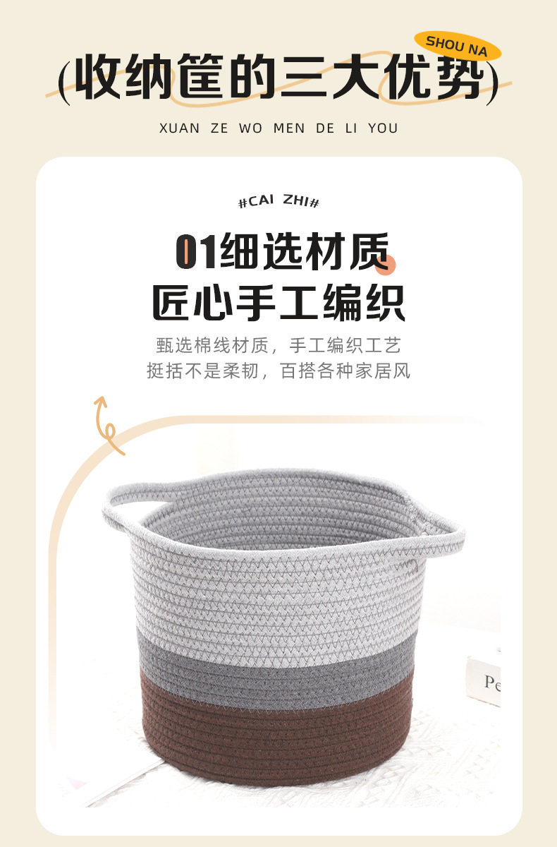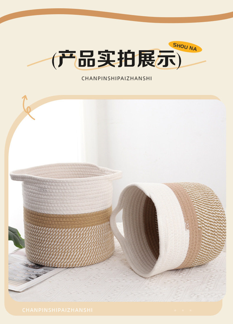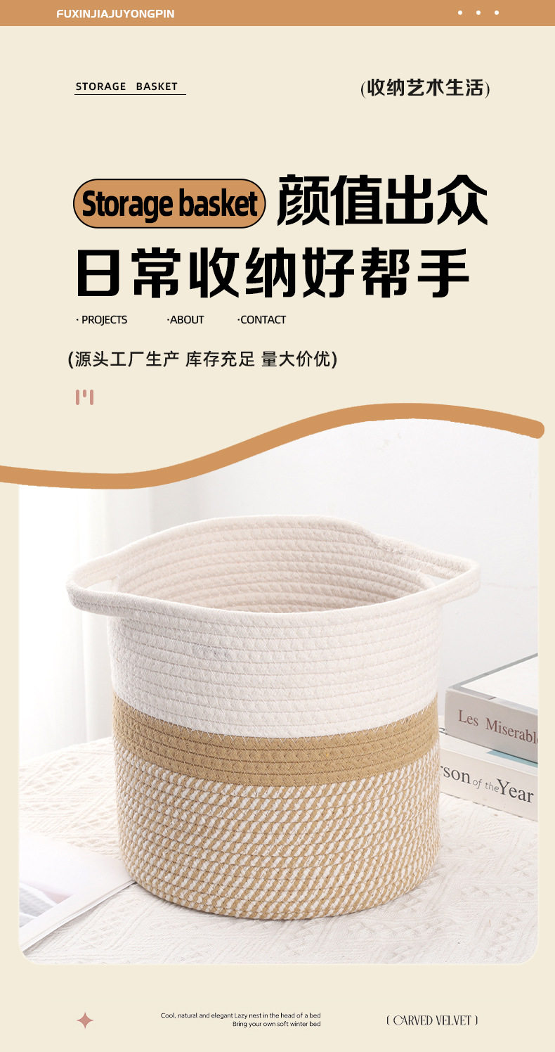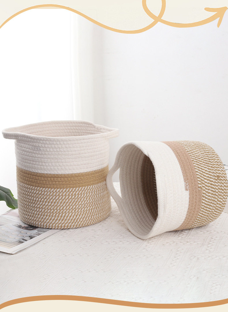 New Storage Basket Cotton Thread Basket Woven Basket Rattan Round Internet Celebrity Storage Basket Large Wholesale Storage Basket Storage Basket